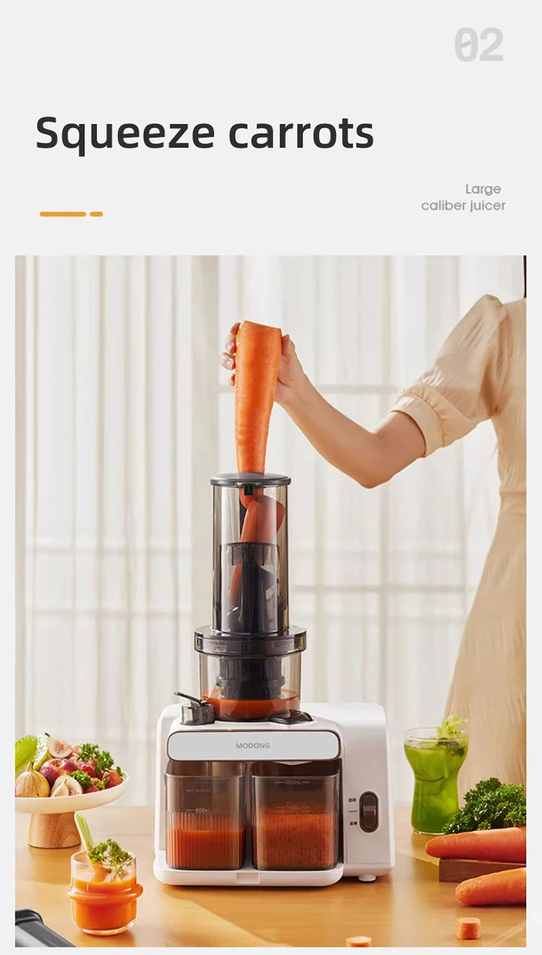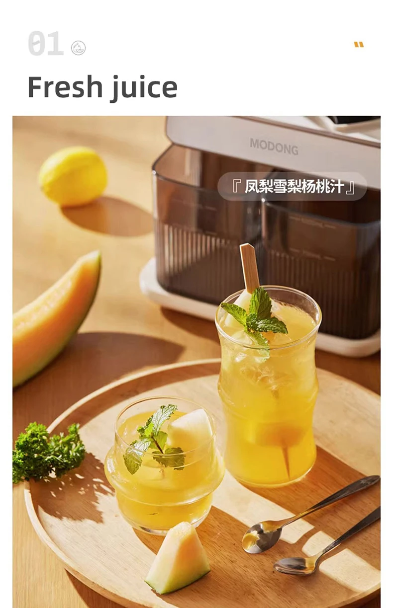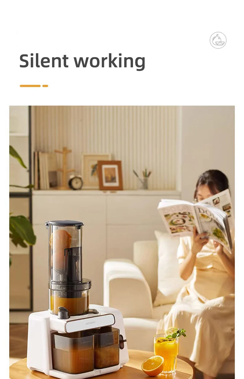 * اعتماد الضغط بطيء حلزوني ، باستخدام عملية القطع والسحق والطحن والضغط والضغط للضغط على العصير وإخراج الثمالة ، بحيث يكون العصير نقيًا وأصليًا دون طعم الثمالة.