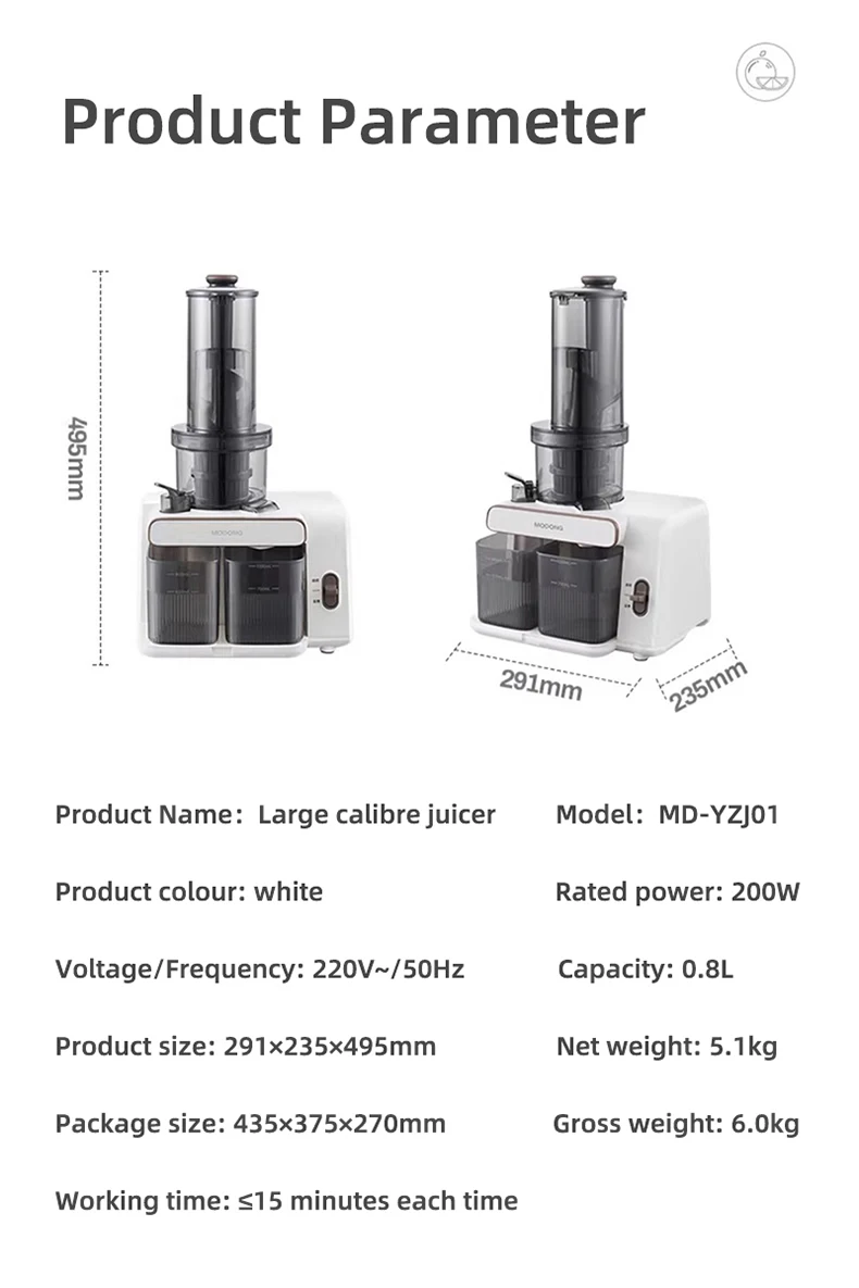 * لا يحتاج فصل العصير ثنائي القناة والعنب والبطيخ والفواكه الأخرى إلى إزالة البذور ، ويتم فصل العصير والبقايا تلقائيًا ، وعصير ناعم وفم جيد.