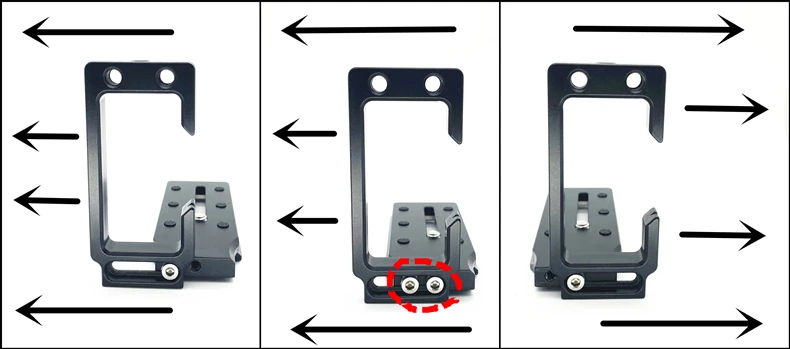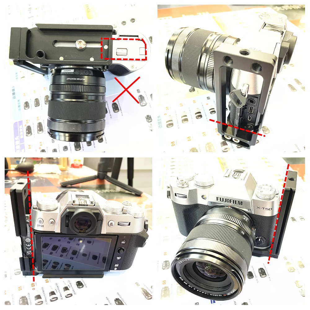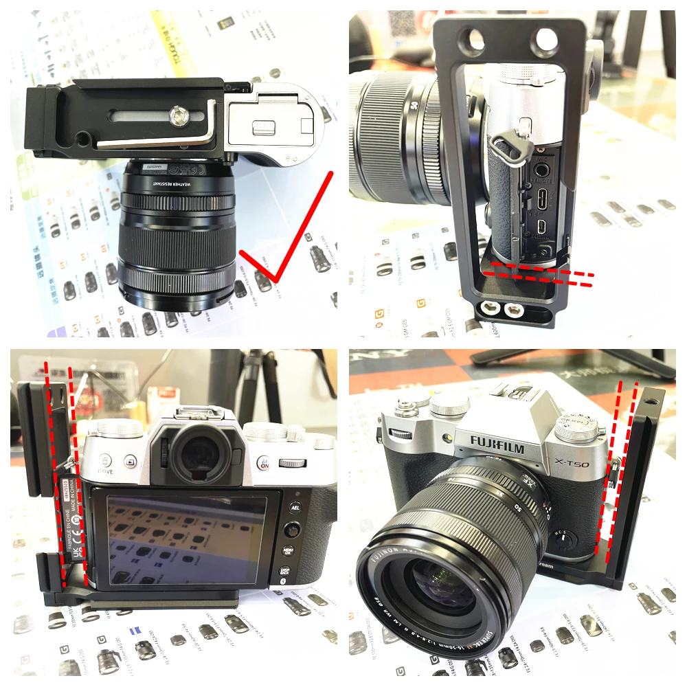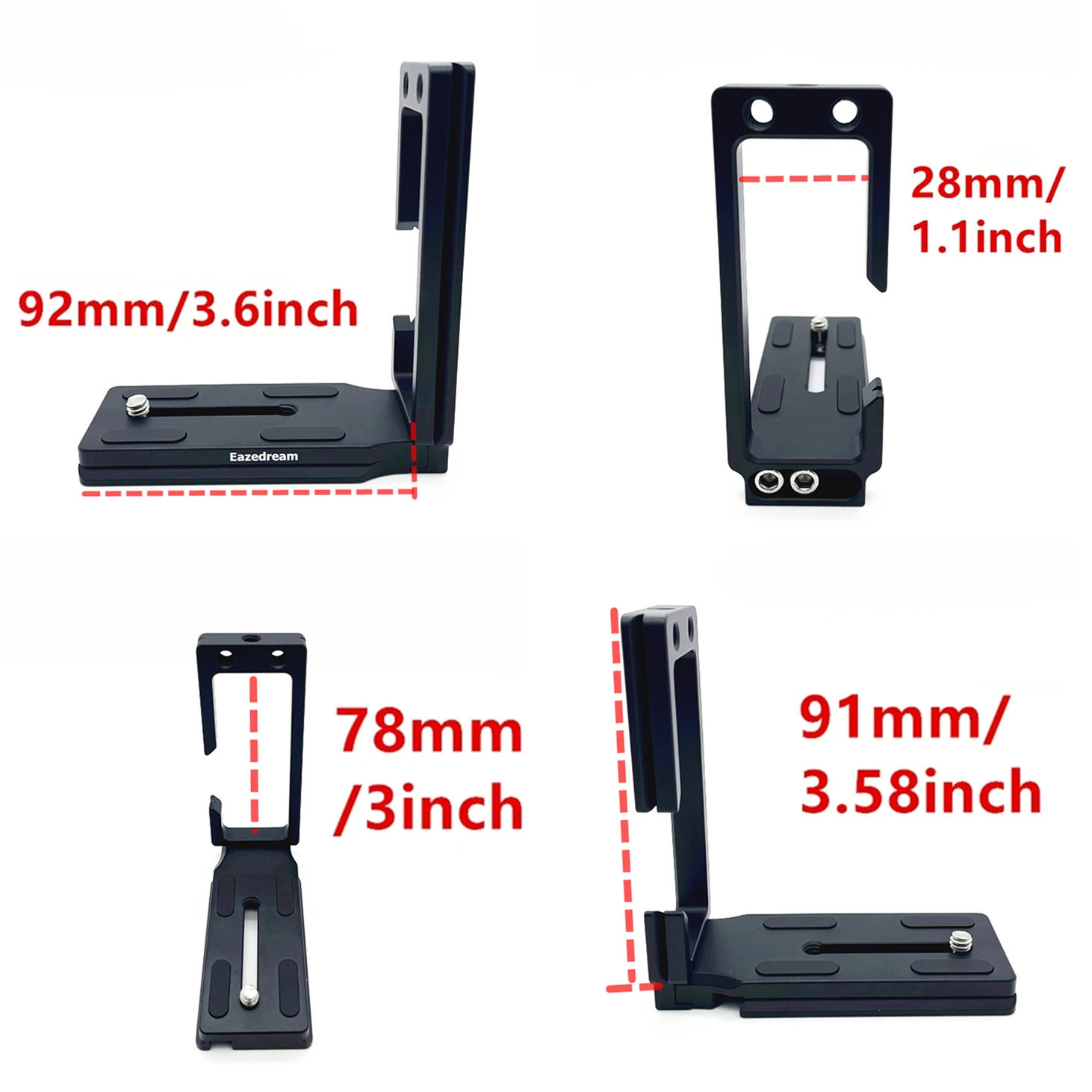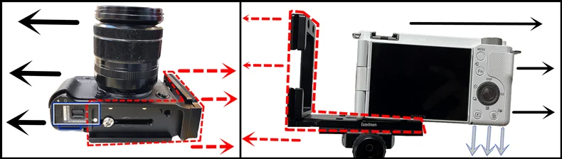 8. تصميم عالمي يتكيف مع معظم الكاميرات مع ثقب ثلاثي القوائم في الأسفل ، ولكن بالنسبة لبعض الكاميرات ،تحتاج إلى تحريك الإطار الجانبي قليلاً إلى اليسار أو اليمين لفتح غطاء الواجهة ، أو سحب اللوحة بعيدًا عن الكاميرا قليلاً لتجنب حجب غطاء البطارية، لا سيما ليست جيدة بالنسبة للكاميرات المدمجة نقطة واطلاق النار أو M43 ، ليست مثالية بما فيه الكفاية.