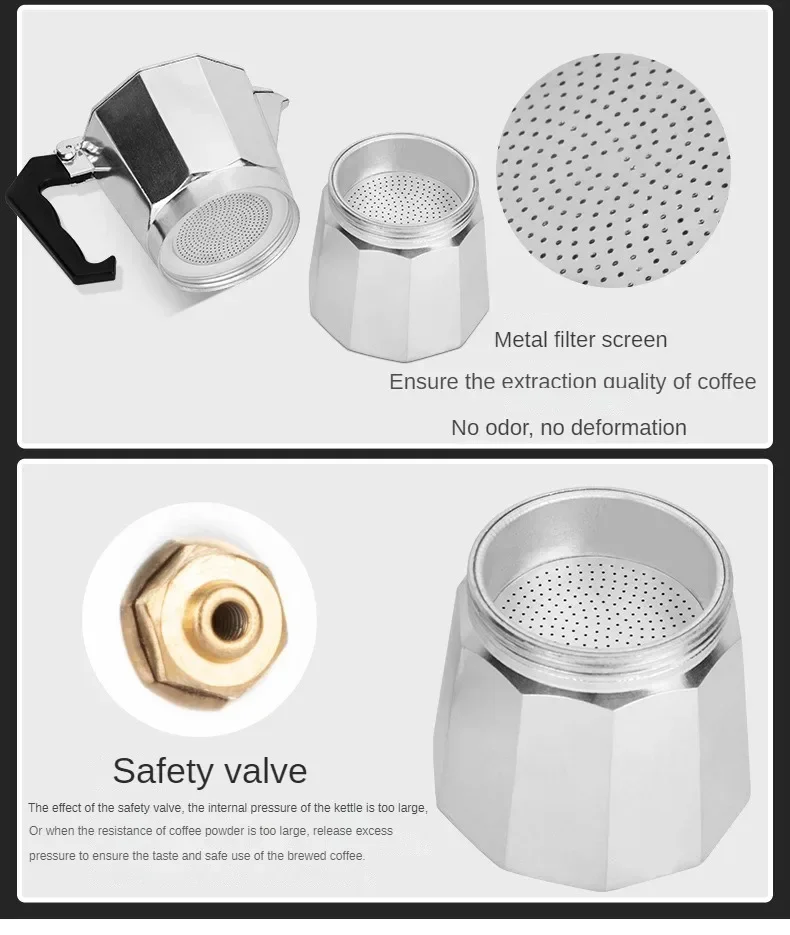 أواني القهوة الإيطالية الألومنيوم وعاء مثمن فنجان القهوة صانع الشاي صانع القهوة المحمولة شرطي القهوة Cafeteira