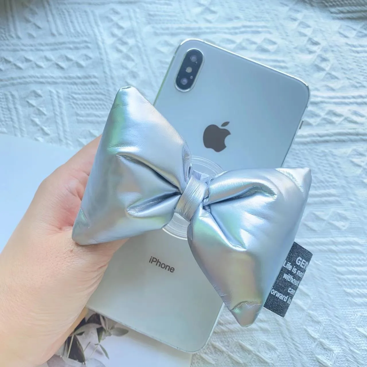 iPhone Samsung Huawei Xiaomi موبائل فون Griptok Finger Bracket کے لیے Ins Down Jacket Bow-not Fluffy Phone Grip