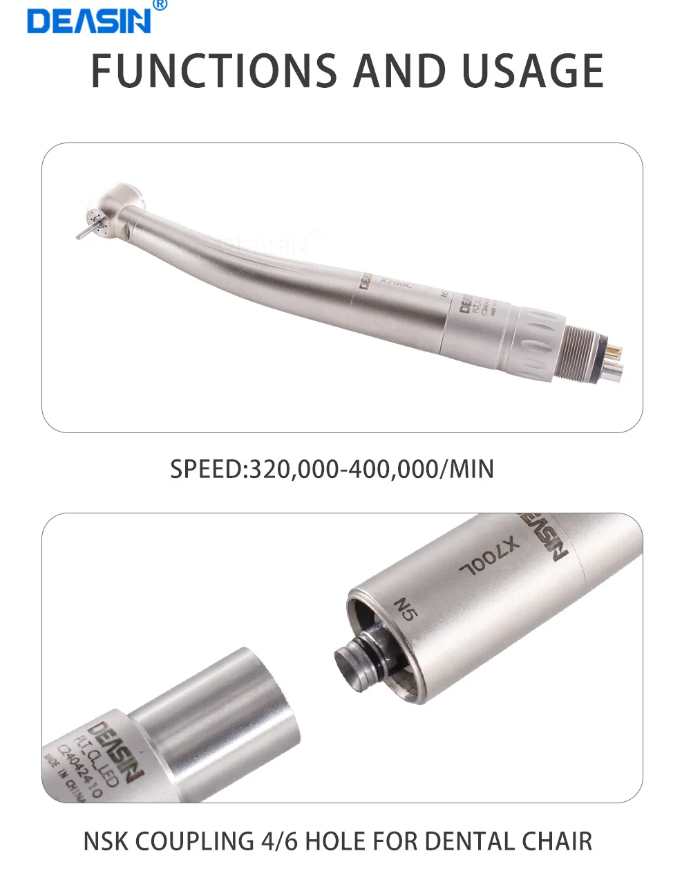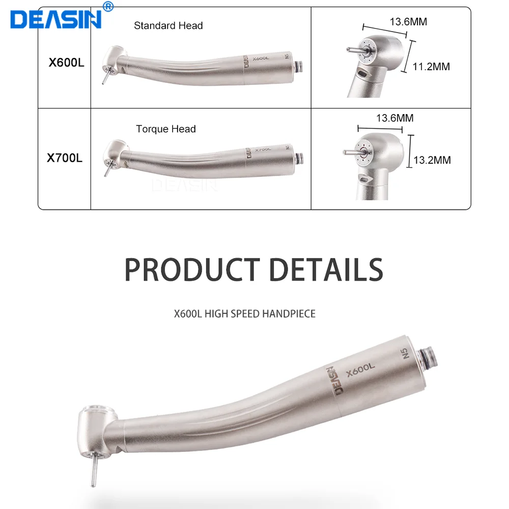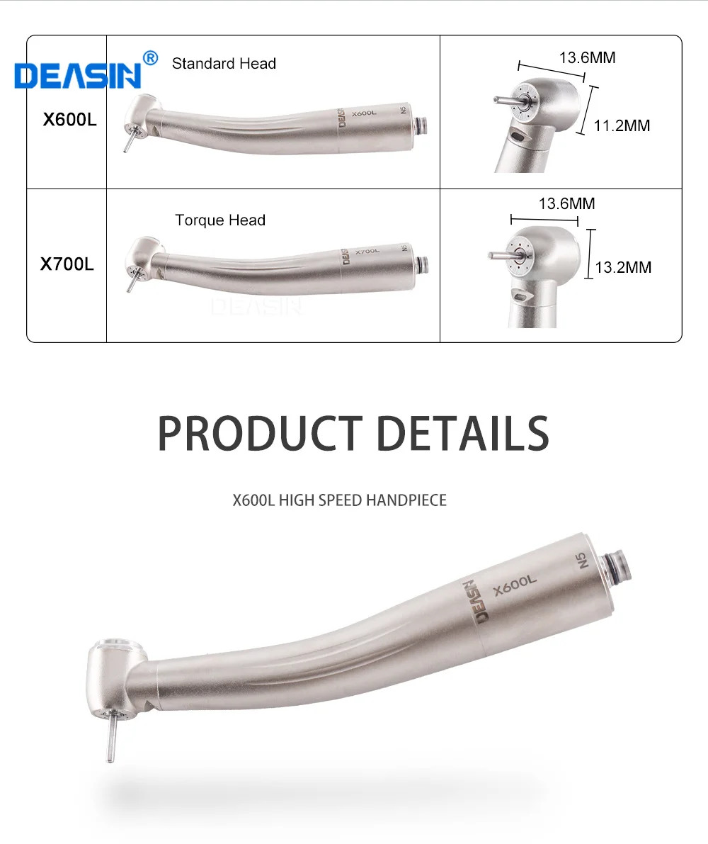 أدوات قبضة توربين الهواء عالية السرعة للأسنان مع الألياف البصرية ، رأس زر الضغط ، محمل السيراميك ، معيار أو توركوي ، X600L X700L