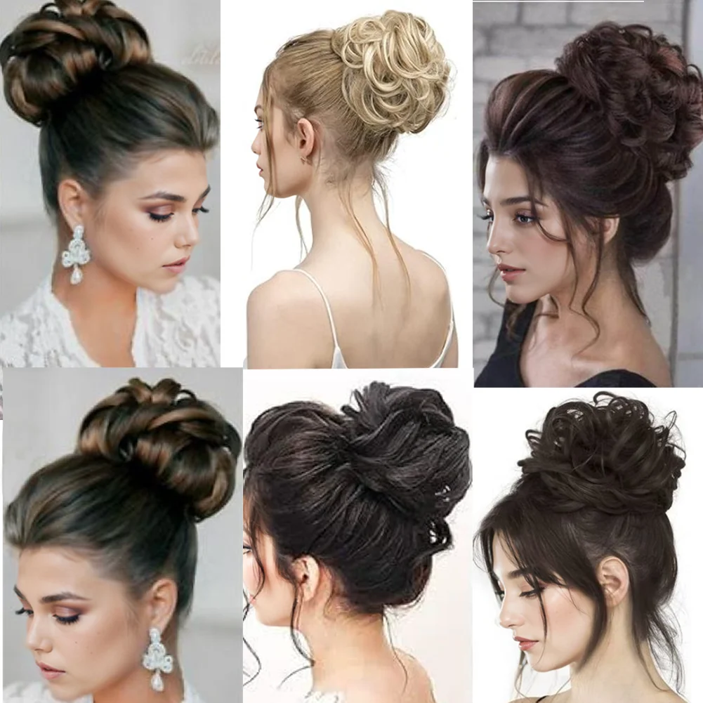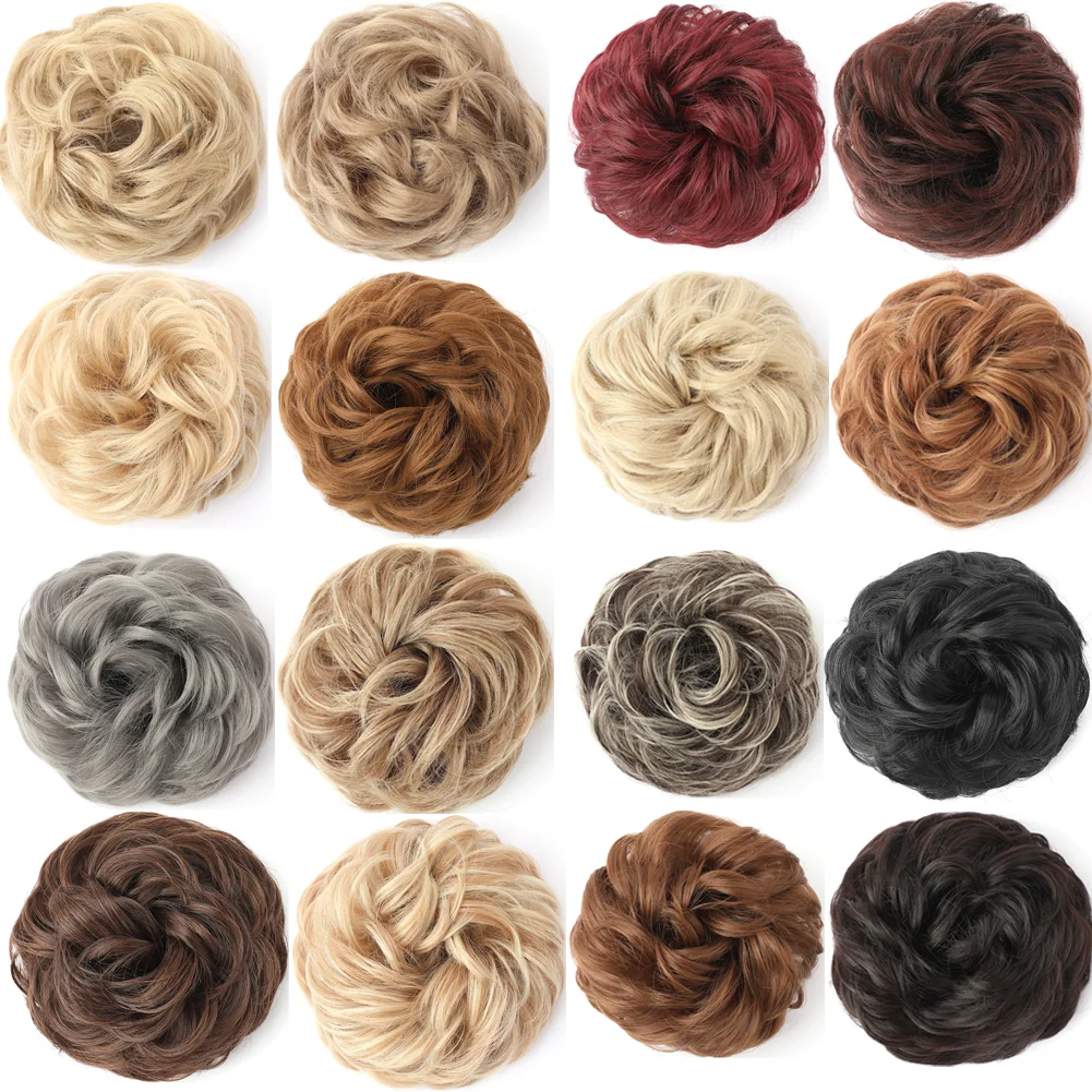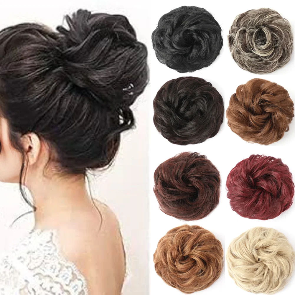 قطعة شعر اصطناعية فوضوية للنساء ، وصلات شعر ذيل حصان ، قطع شعر سميكة ، سكرونشي مجعد ، قطعة شعر