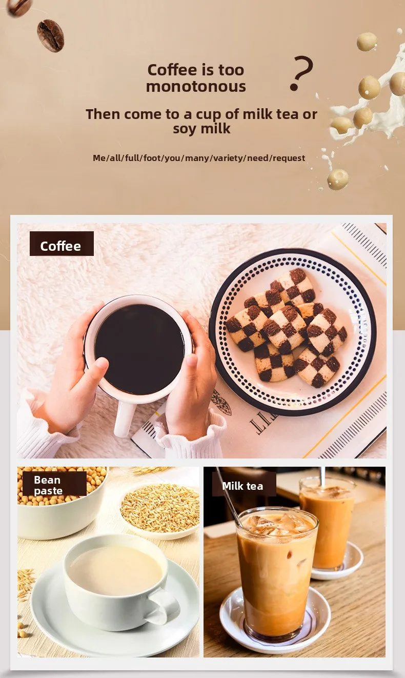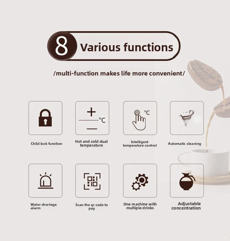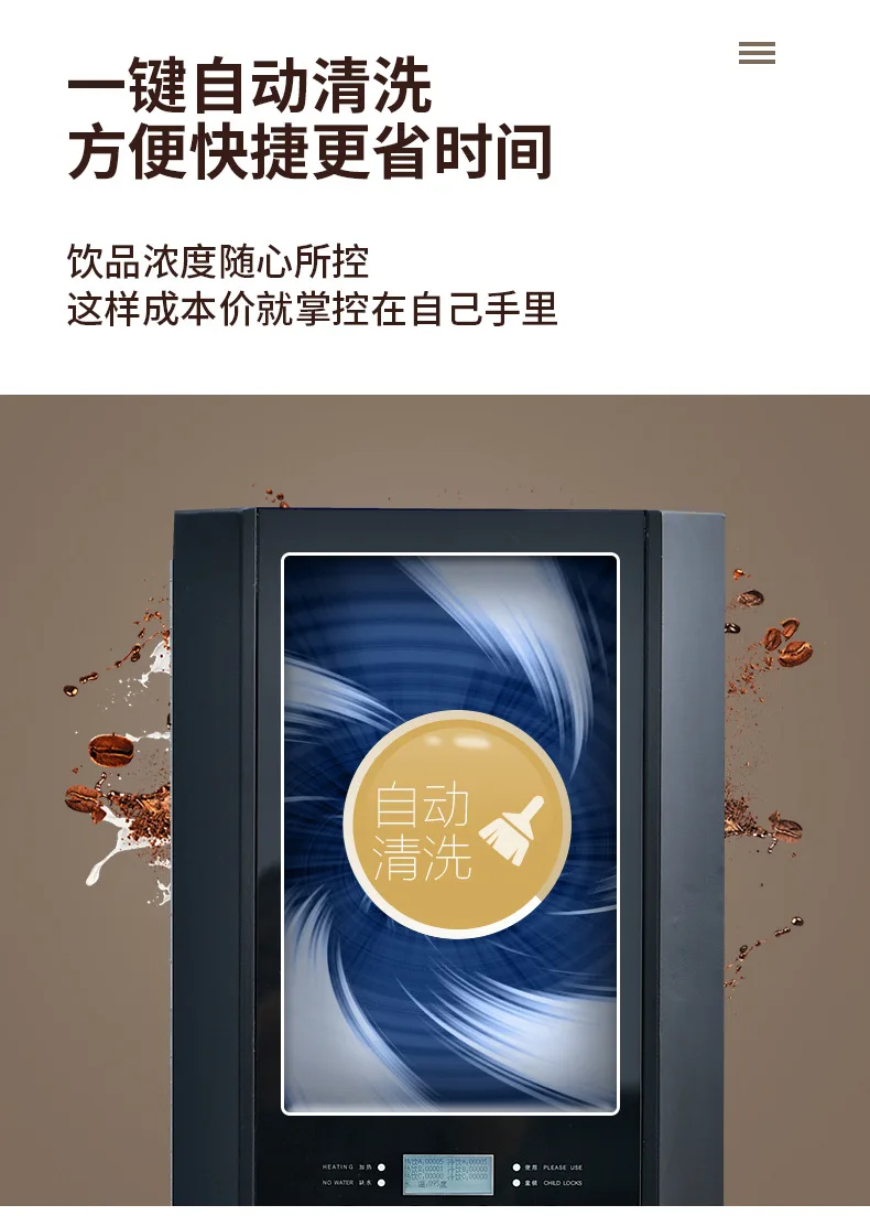 ماكينة صنع القهوة التجارية، شاي الحليب، متكاملة، أوتوماتيكية بالكامل، مكتب، ساخن وبارد، متعددة الوظائف، حليب الصويا، المشروبات