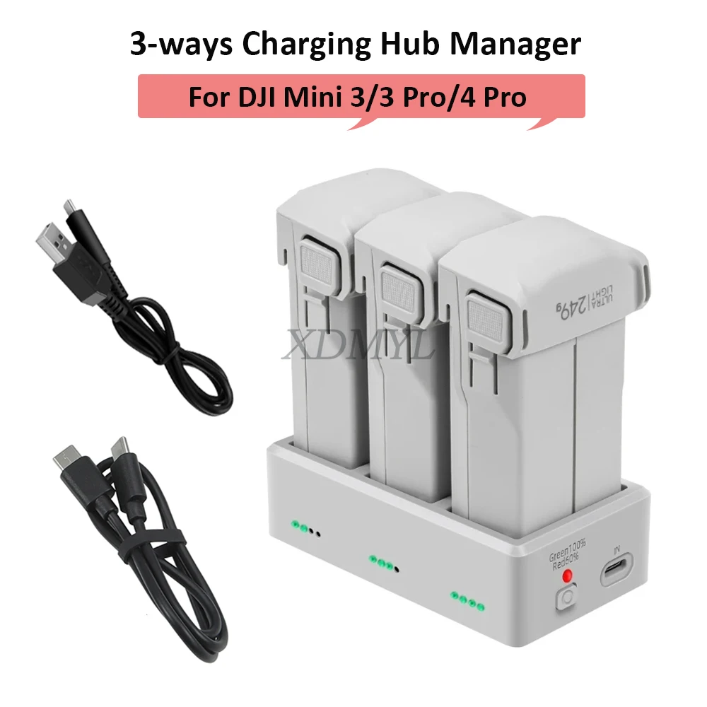 3-Way شاحن بطارية مدير ل Mini 3/Mini 3 Pro شحن محور شحن البطارية بتلر ل DJI Mini 4 Pro ملحقات طائرة بدون طيار