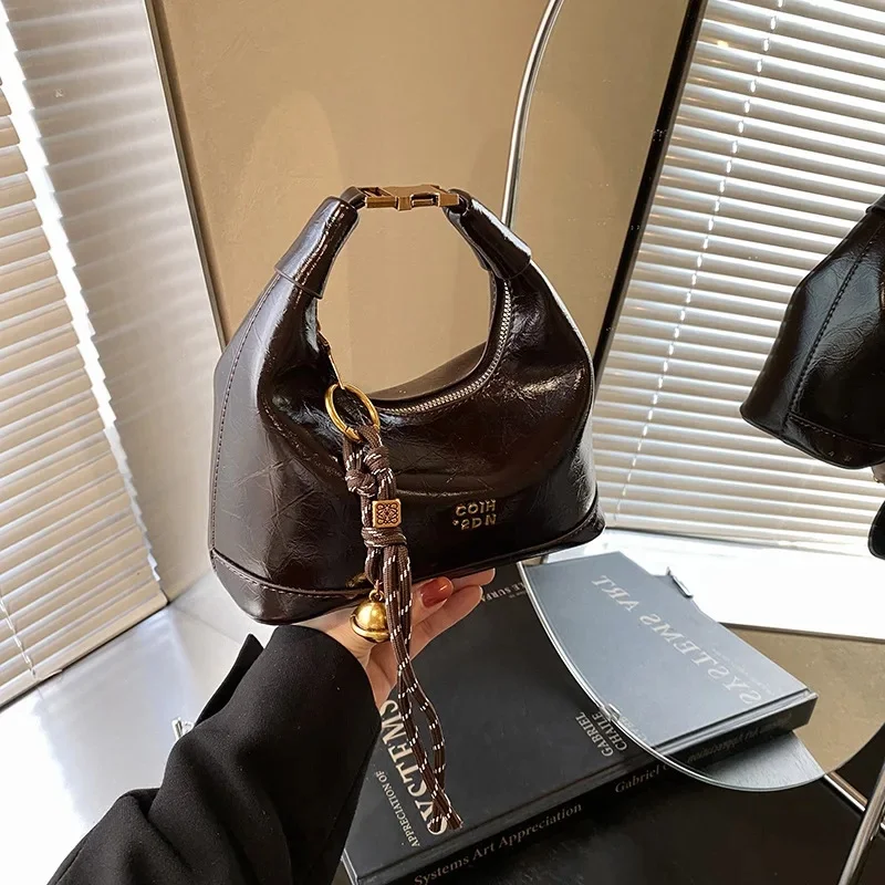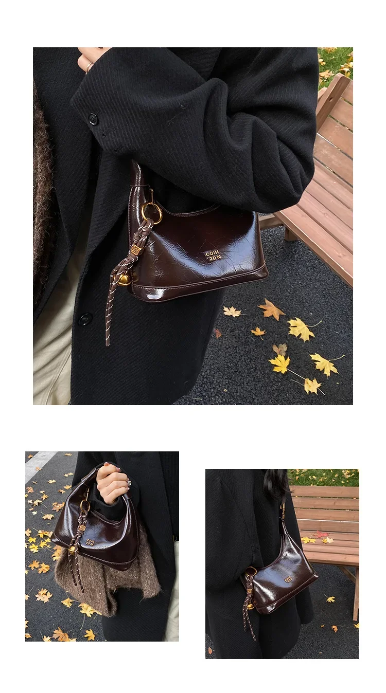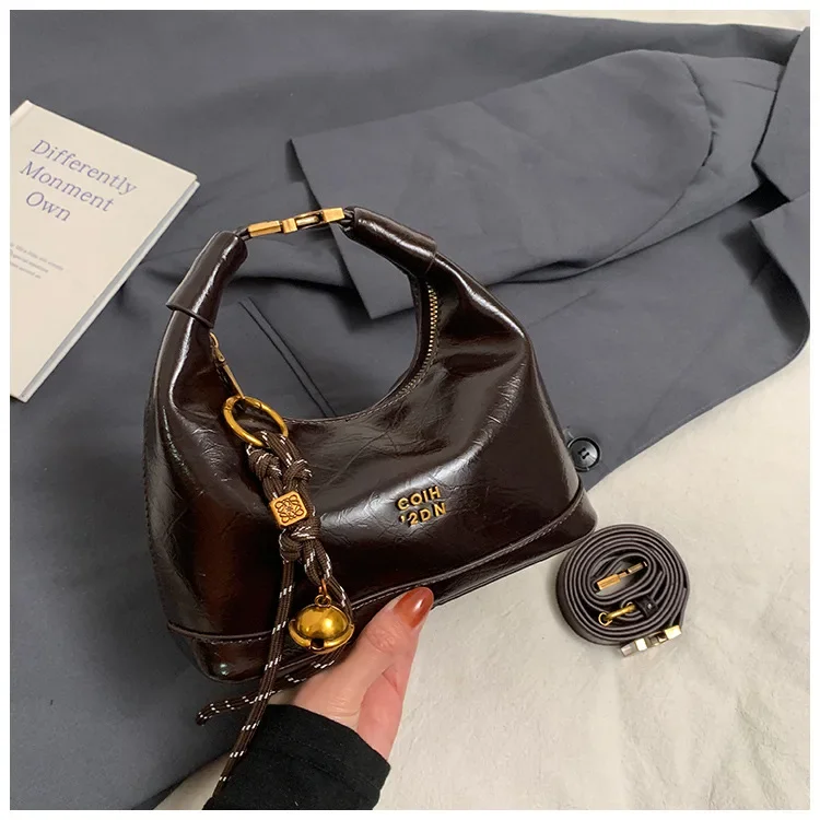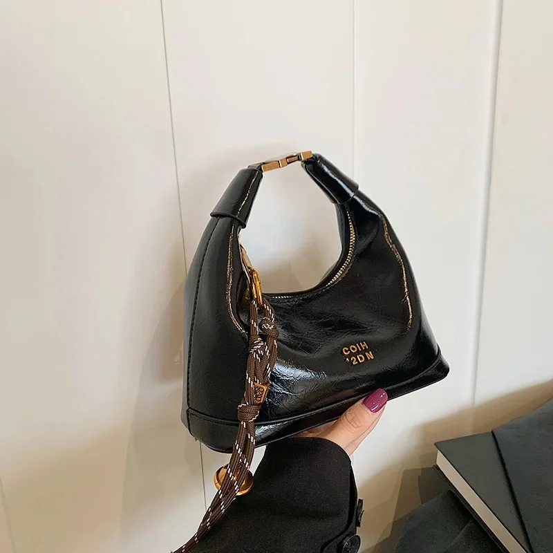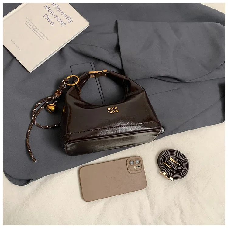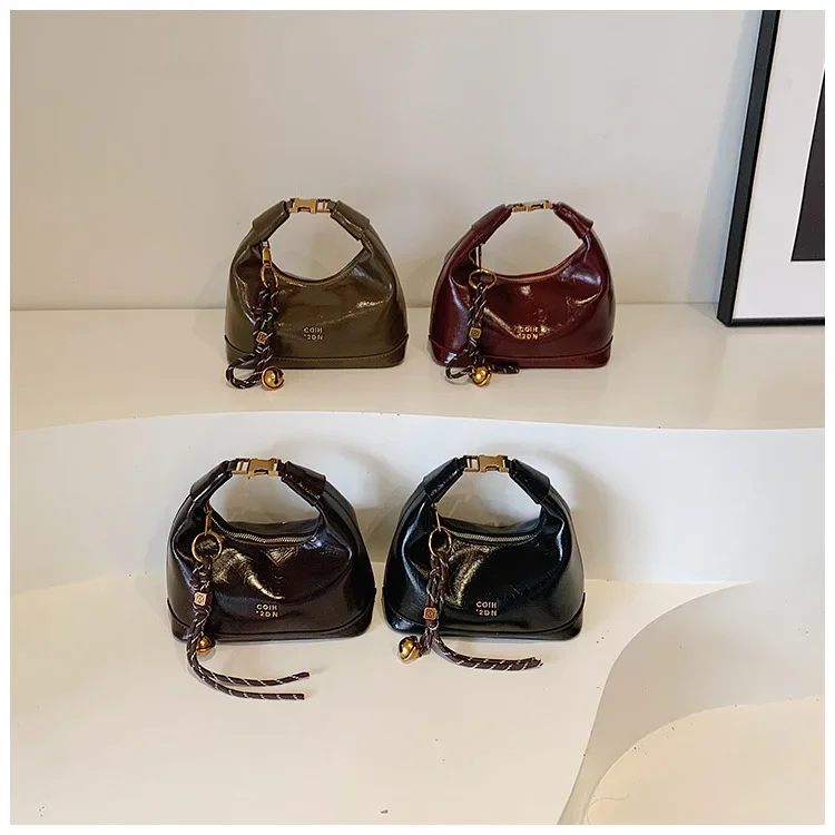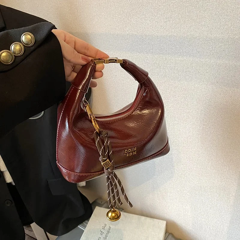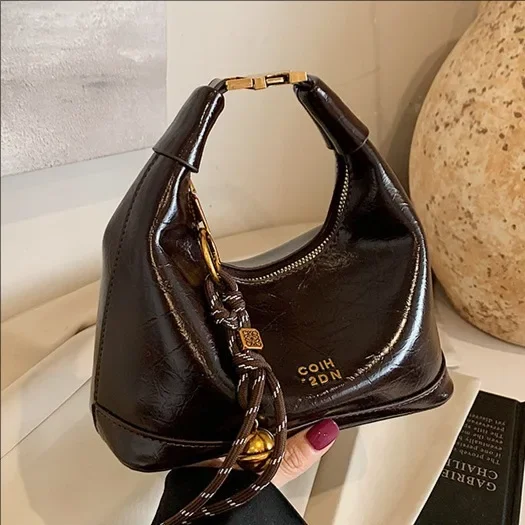 الخريف والشتاء تصميم قديم صغير حقيبة مودرن شبيهة بالدومبلة للنساء، حقيبة عابرة للكتف ذات جودة عالية وجلد PU ناعم مع سحّاب داخلي.