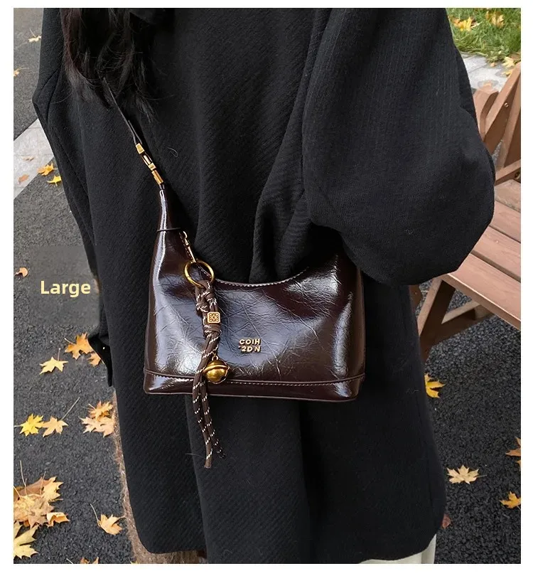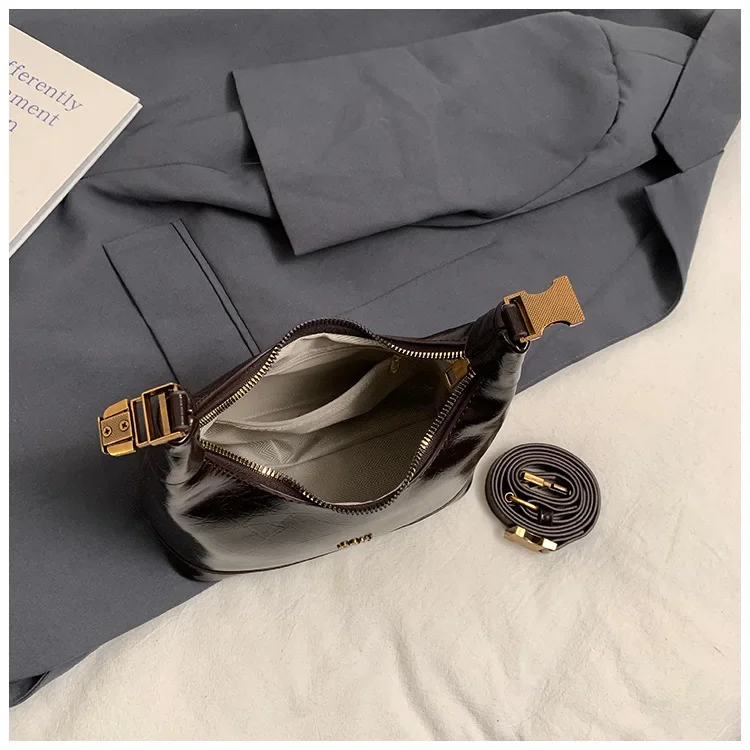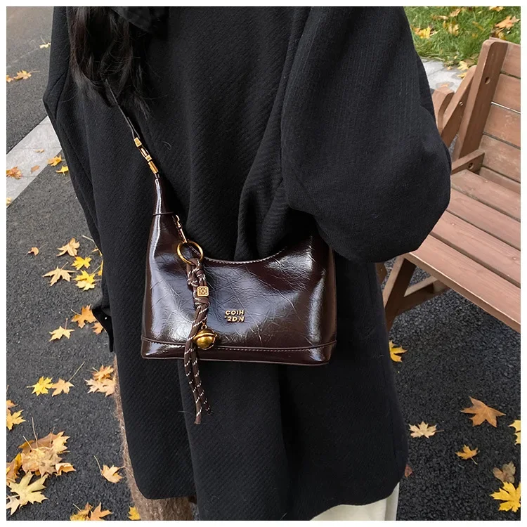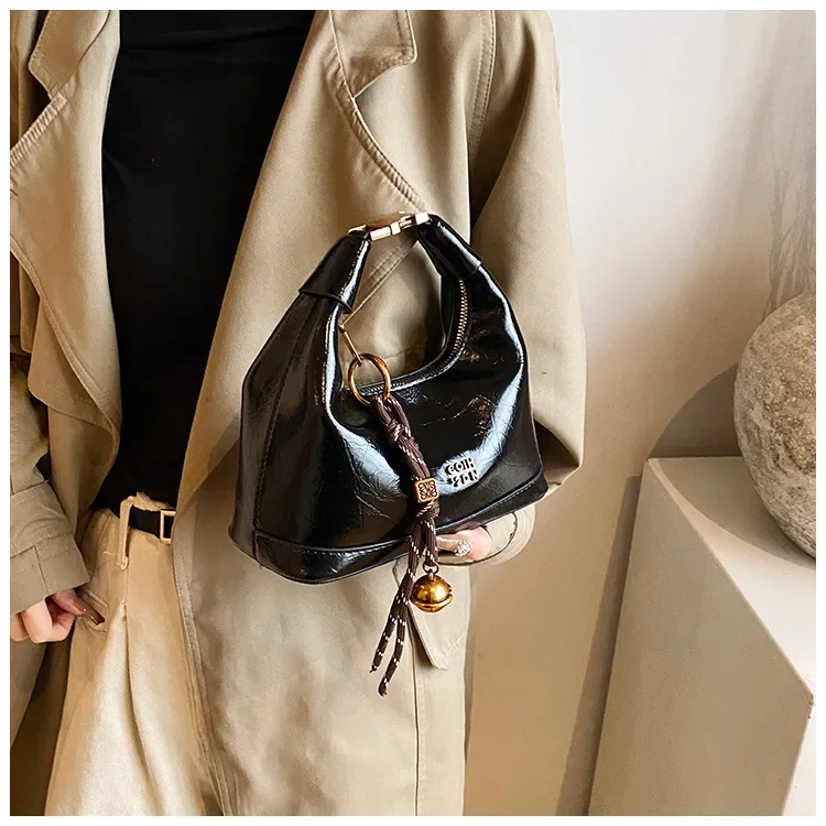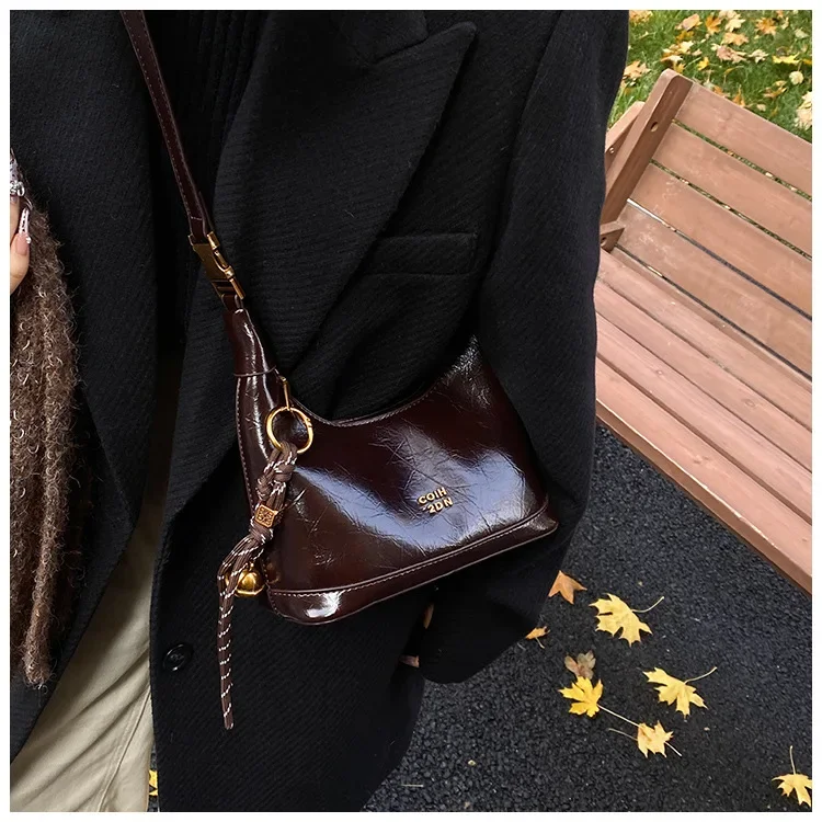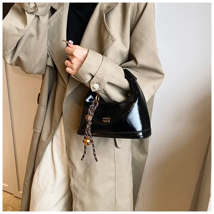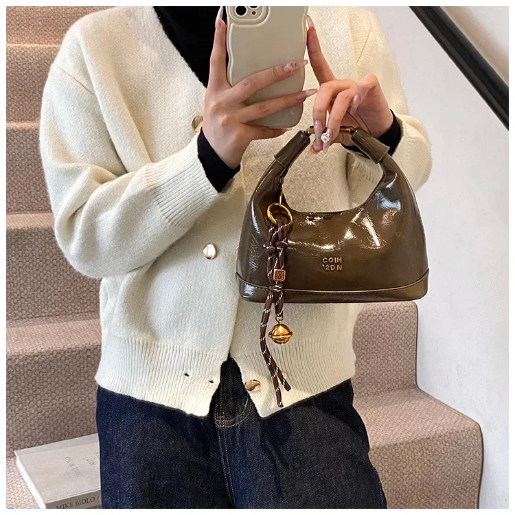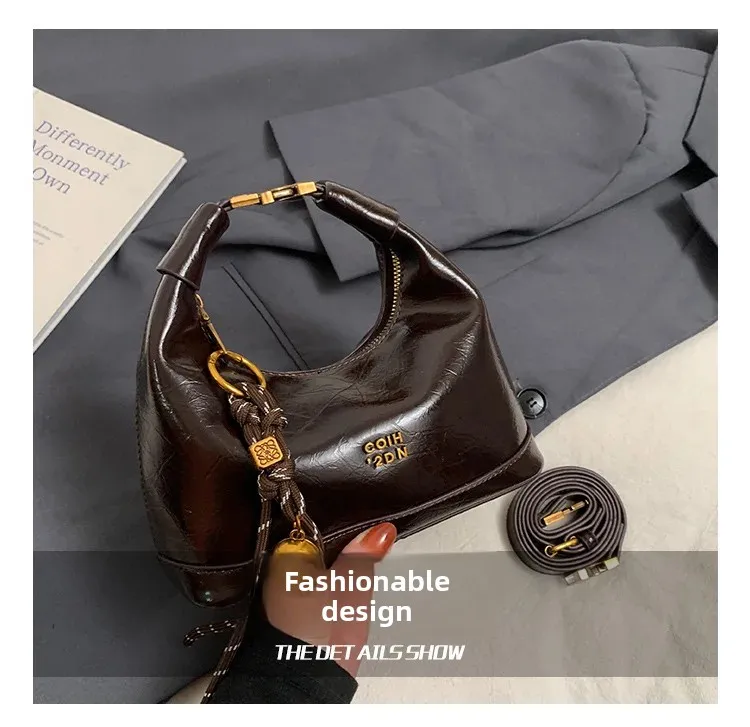 الخريف والشتاء تصميم قديم صغير حقيبة مودرن شبيهة بالدومبلة للنساء، حقيبة عابرة للكتف ذات جودة عالية وجلد PU ناعم مع سحّاب داخلي.