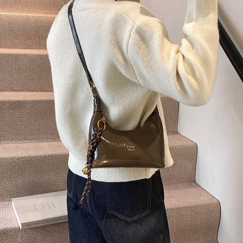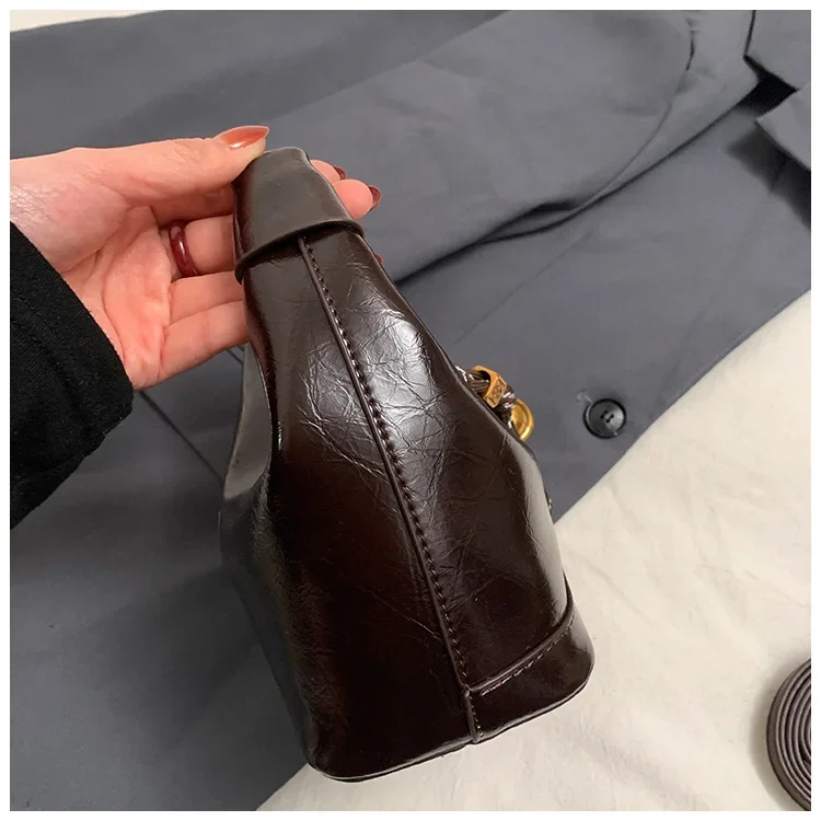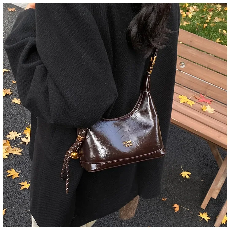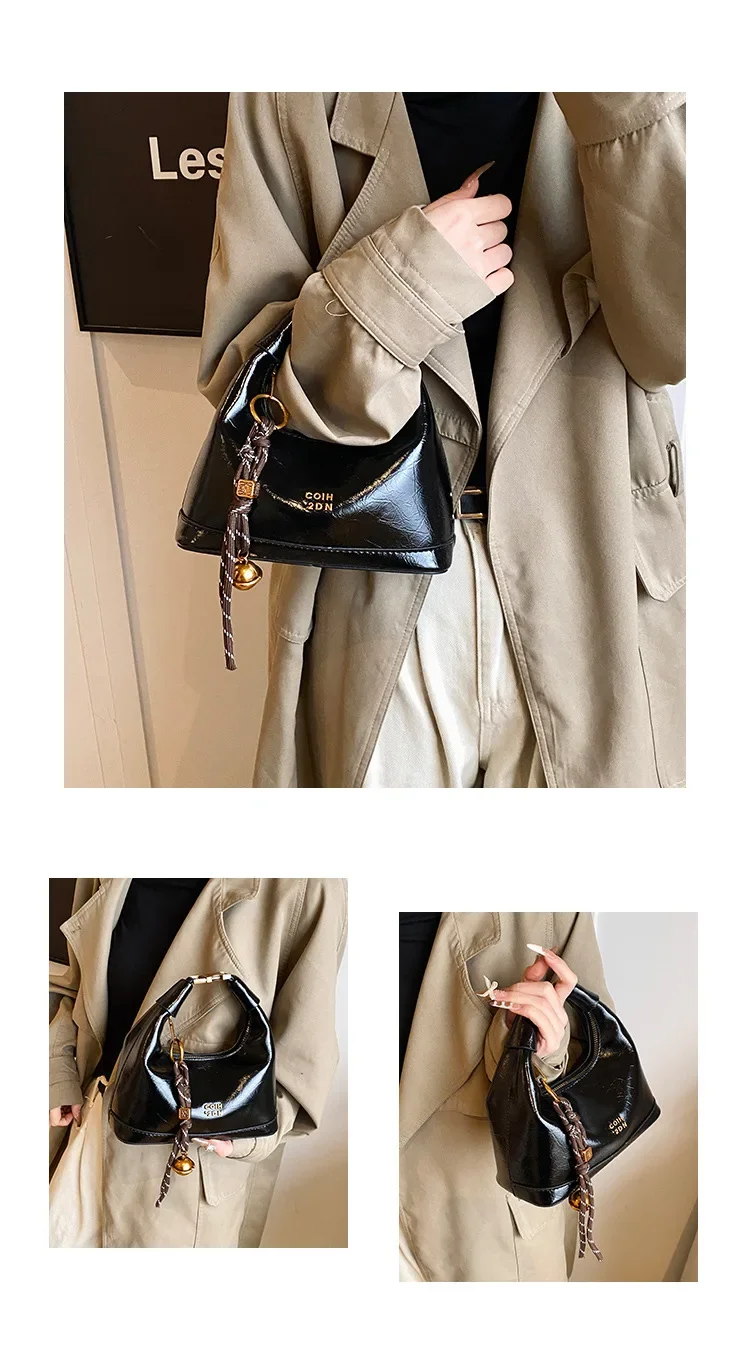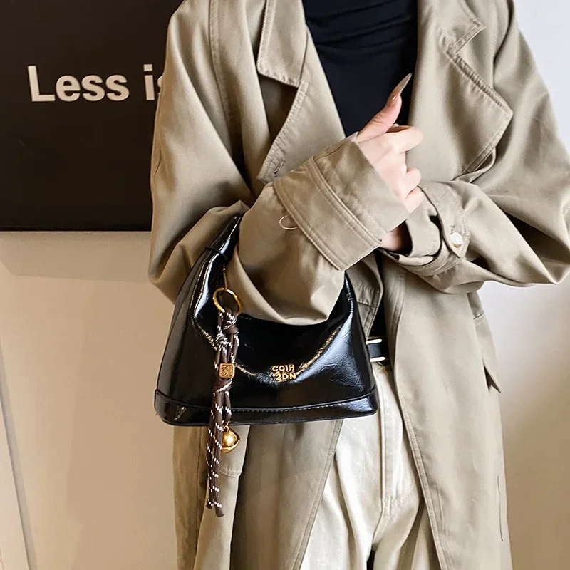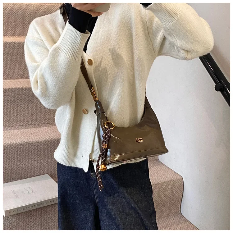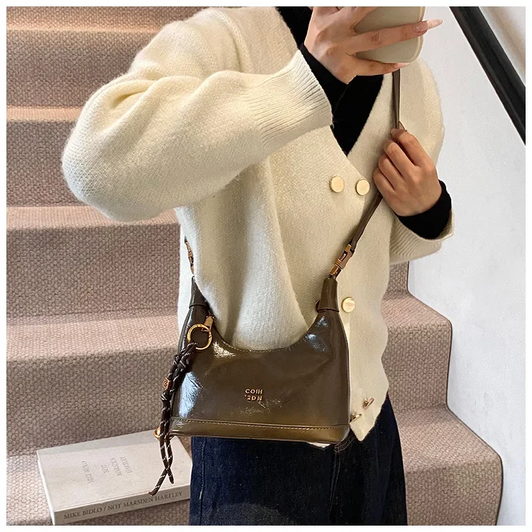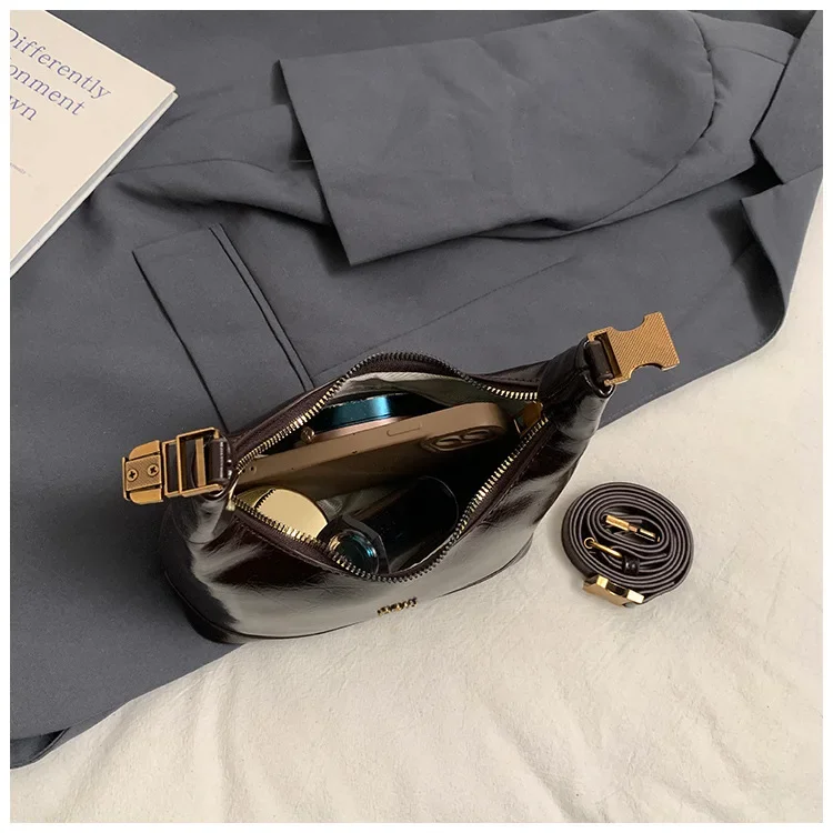 الخريف والشتاء تصميم قديم صغير حقيبة مودرن شبيهة بالدومبلة للنساء، حقيبة عابرة للكتف ذات جودة عالية وجلد PU ناعم مع سحّاب داخلي.