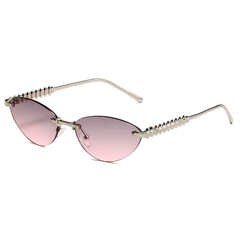 نظارات شمسية بدون إطار على شكل عين القطة للنساء والرجال، نظارات شمسية للحماية من الأشعة فوق البنفسجية للساق المعدنية والقيادة في الهواء الطلق والسفر والشاطئ