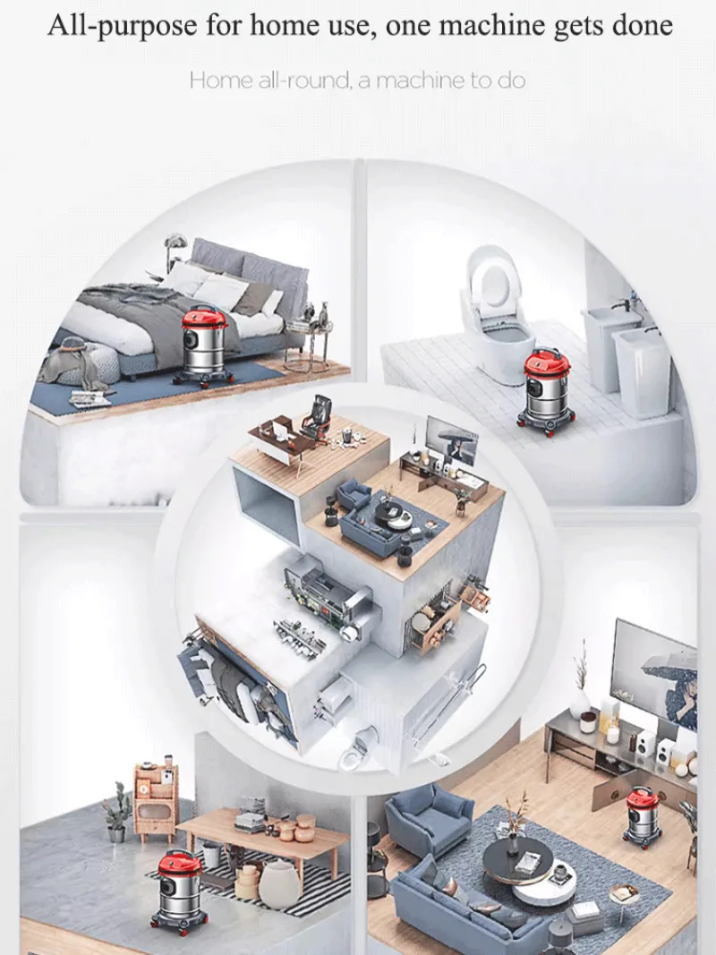 مكنسة كهربائية منزلية صغيرة متعددة الوظائف، مجمع غبار شفط كبير، نفخ جاف، قوة فائقة، محمولة باليد، مكنسة كهربائية رطبة/جافة