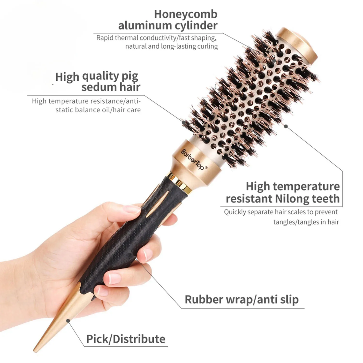 فرشاة بكرات الشعر المجعد ، مشط مستدير للصالون ، بكرة الشعر ، برميل شعيرات الخنزير ، أدوات تصفيف الشعر ، 4 أحجام