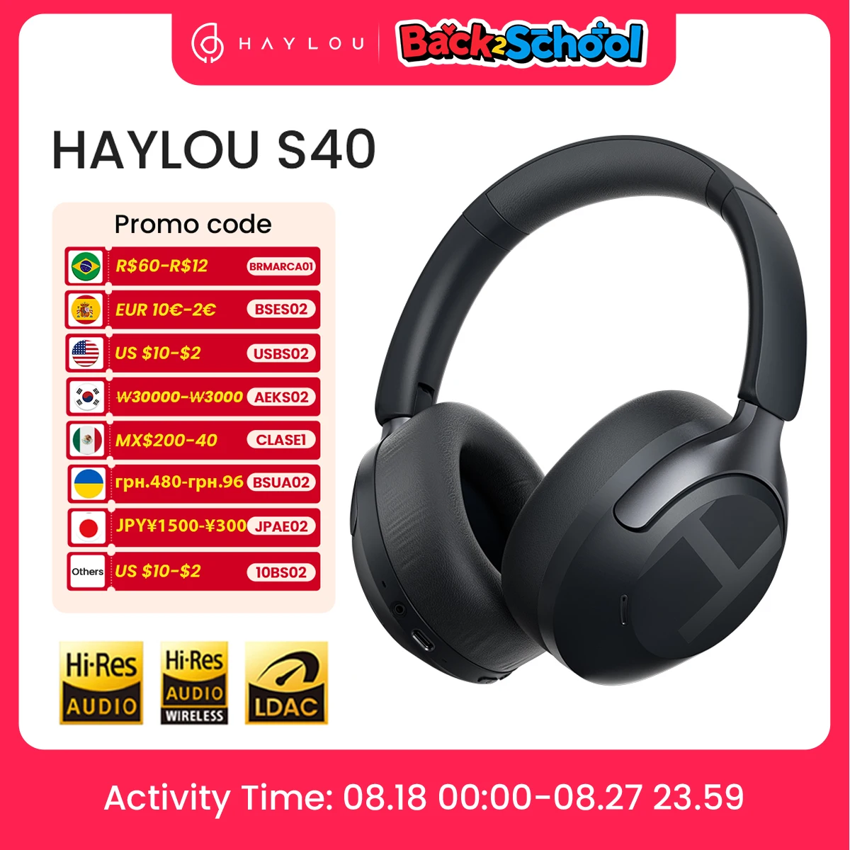 HAYLOU S40 ANC سماعة رأس لاسلكية 50dB إلغاء الضوضاء مرحبا الدقة ثلاثية الأبعاد سماعة الصوت المكاني مع LDAC بلوتوث 6.0 فوق الأذن سماعة