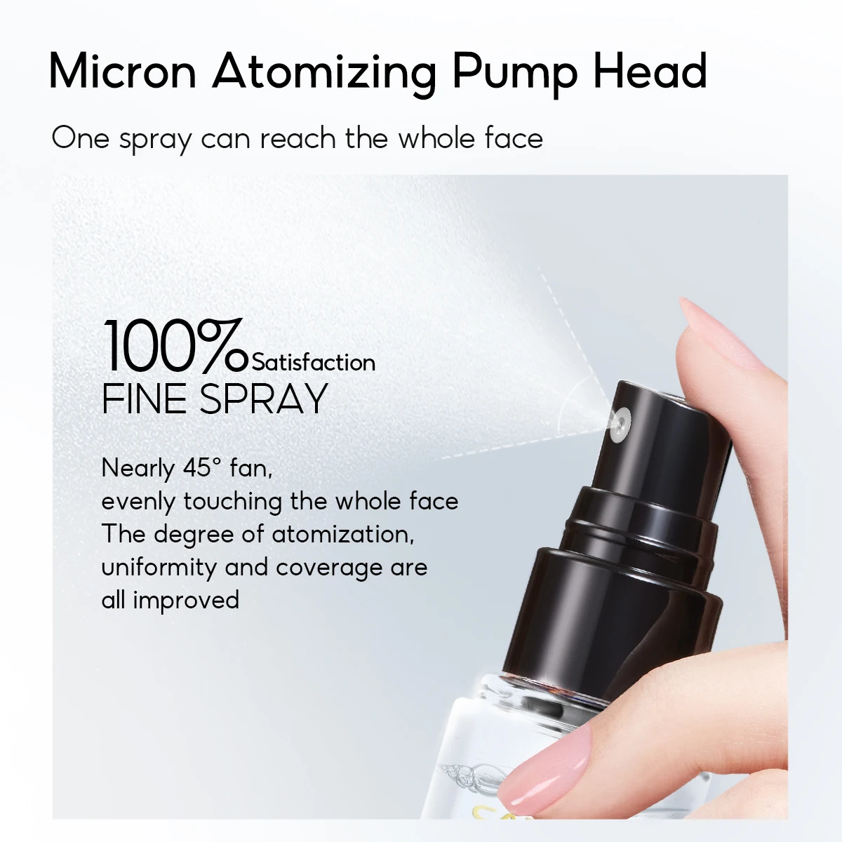 هز الزجاجة بلطف ، اضغط على فوهة حوالي 30 سنتيمتر بعيدا عن الوجه ، رذاذ الضباب بالتساوي على الوجه وانتظر حتى يجف بشكل طبيعي.
