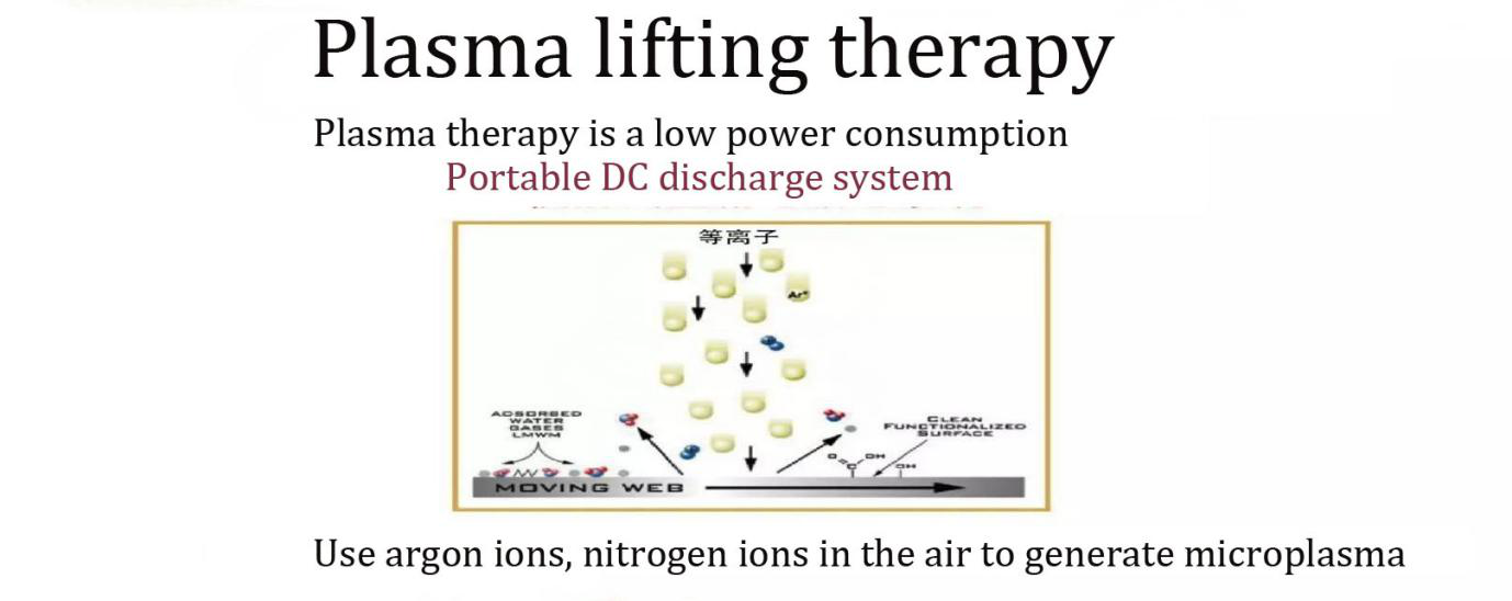 2. الطاقة التي ينتجها البلازما يتم توليدها بواسطة تيار كهربائي صغير، والذي يستخدم لعلاج الجزء المتدلي بحيث يكون