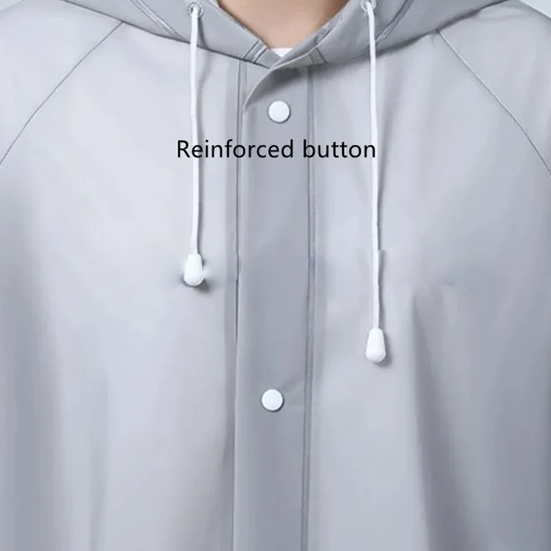 4.تصميم بغطاء للرأس قابل للتعديل: تم تصميم قبعة معطف المطر لتتكيف مع أنواع وأحجام الرأس المختلفة وتوفر لك الحماية الشاملة.تصميم المظلة يمكن أن يحمي الوجه من الرياح المعتدلة والمطر.