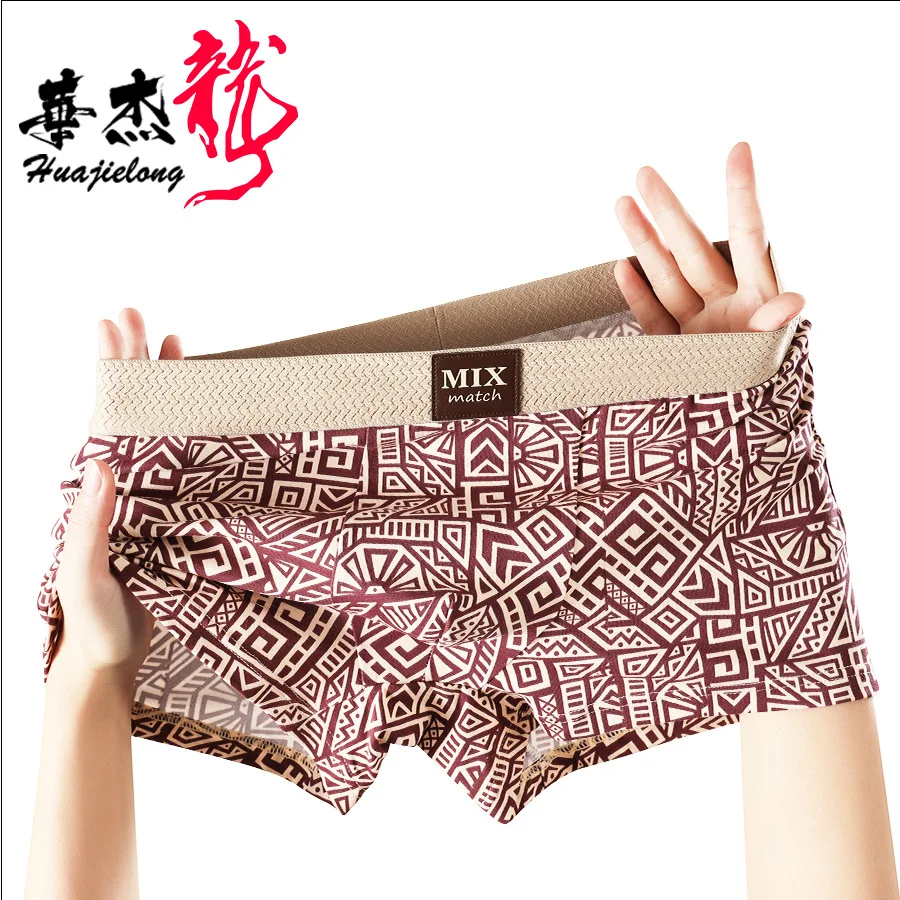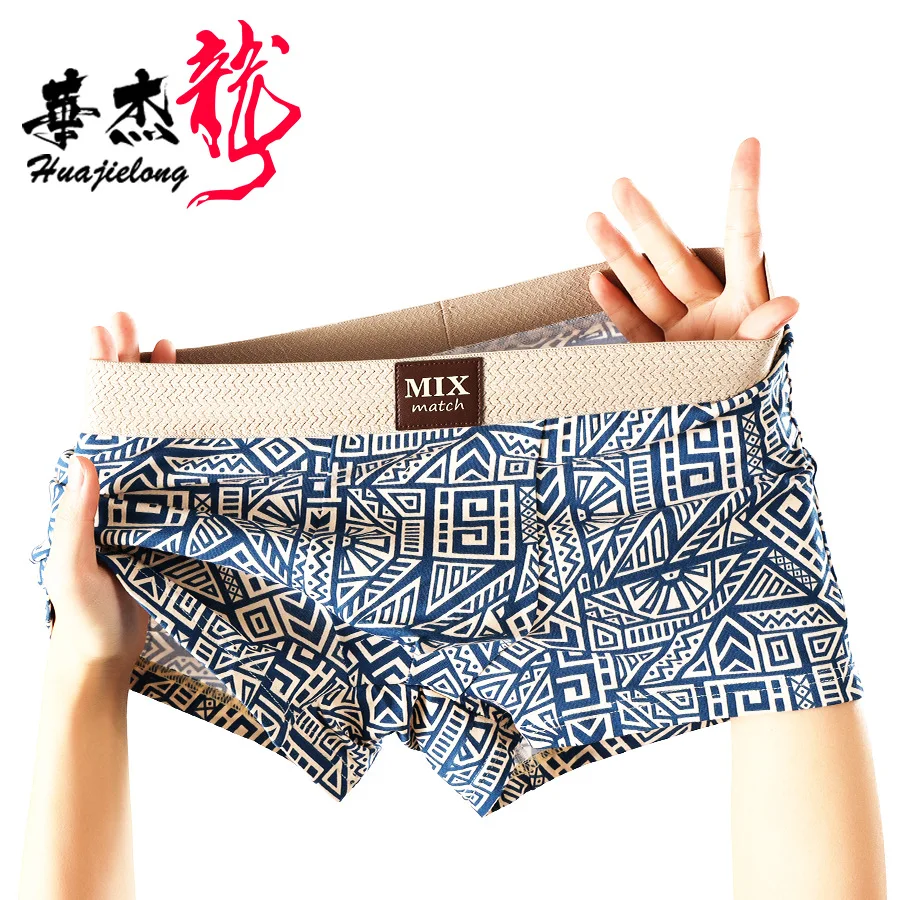 جديد القطن ملابس داخلية للرجال منتصف الخصر سلس حجم كبير تنفس المطبوعة سراويل شريط العرقية نمط السروال سراويل بوكسر