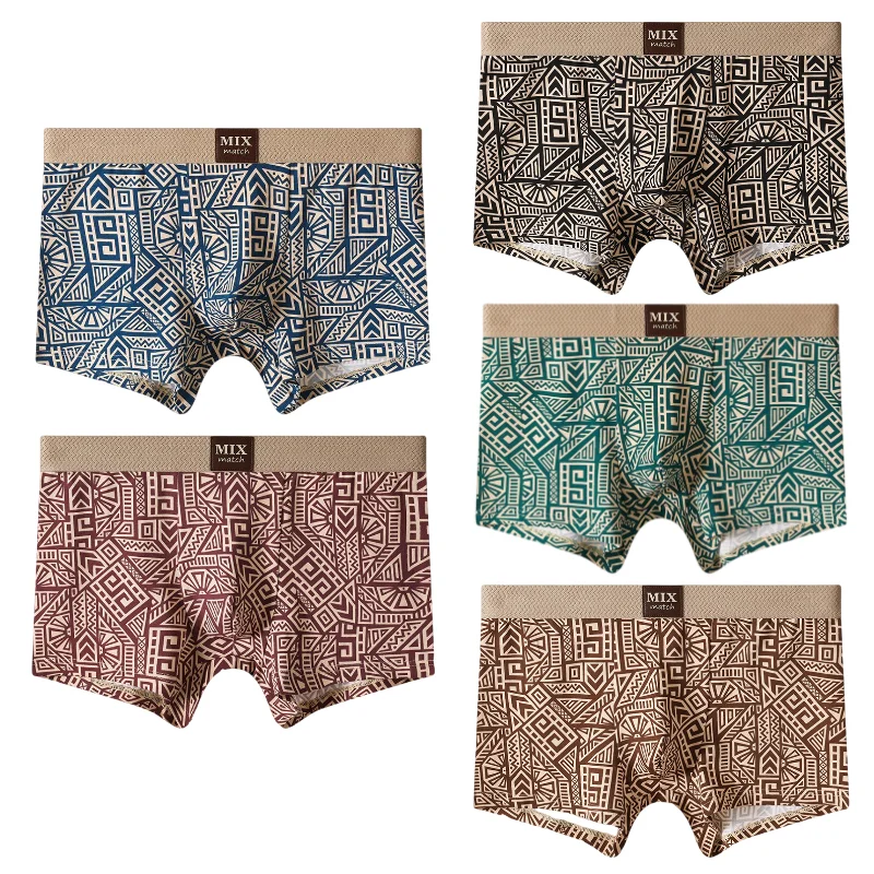 1/3 قطعة ملابس داخلية رجالية قطنية جديدة منتصف الخصر سلسة كبيرة الحجم قابلة للتنفس سراويل مطبوعة شريط نمط عرقي السروال سراويل بوكسر