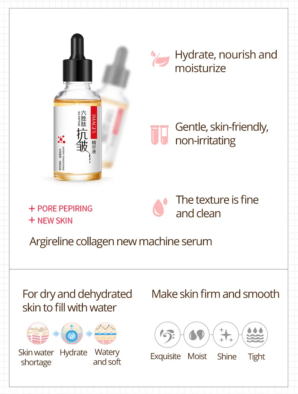 سيروم حمض الهيالورونيك مع ستة ببتيدات ، سائل ، مضاد للتجاعيد ، كريم عيب ، العناية بالبشرة ، جوهر ، تبييض ، ترطيب
