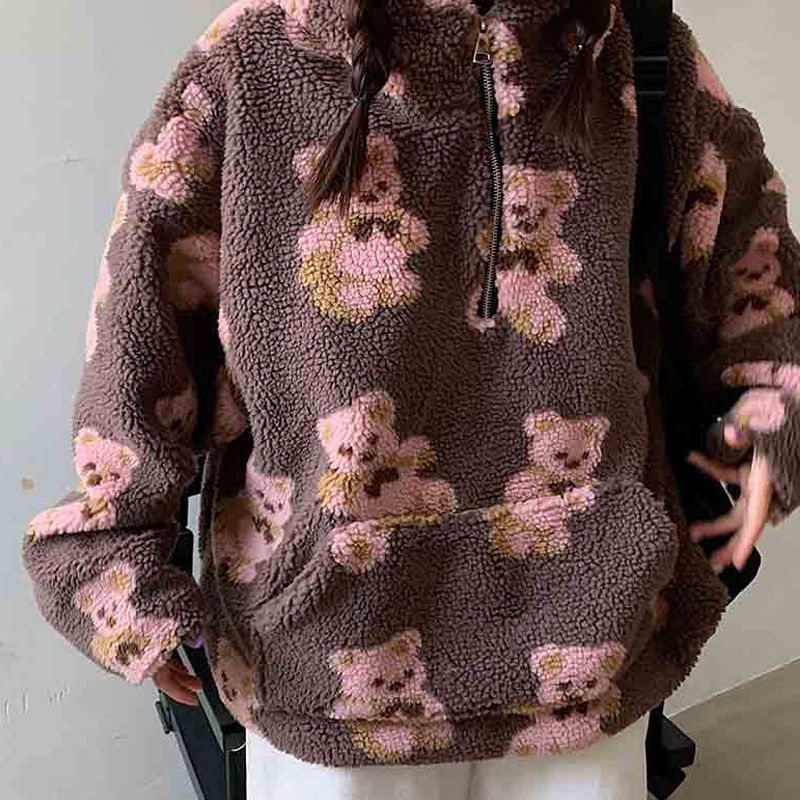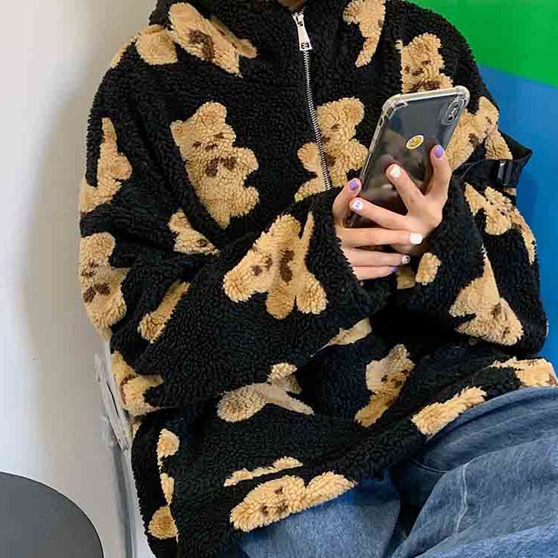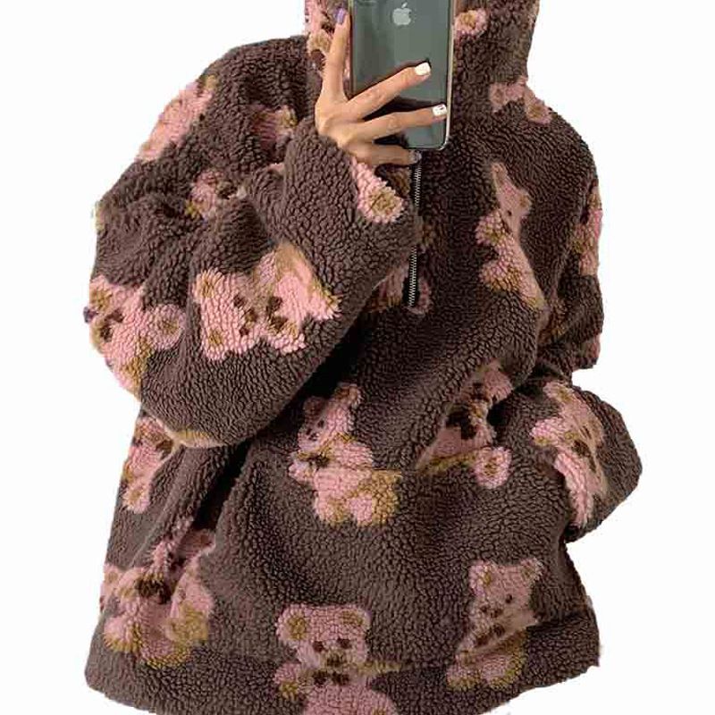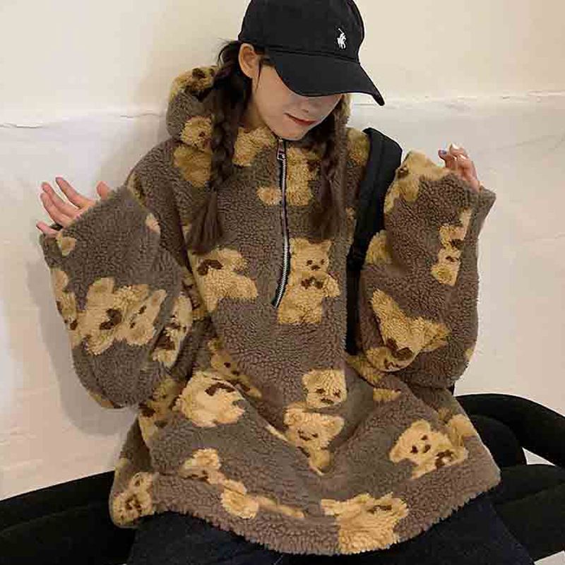 ملابس نسائية معطف صوف خروف مزخرف للنساء فضفاض مع هودي بالنسخة الكورية لخريف وشتاء جديد سميك سويتر تصميم نسائي خاص