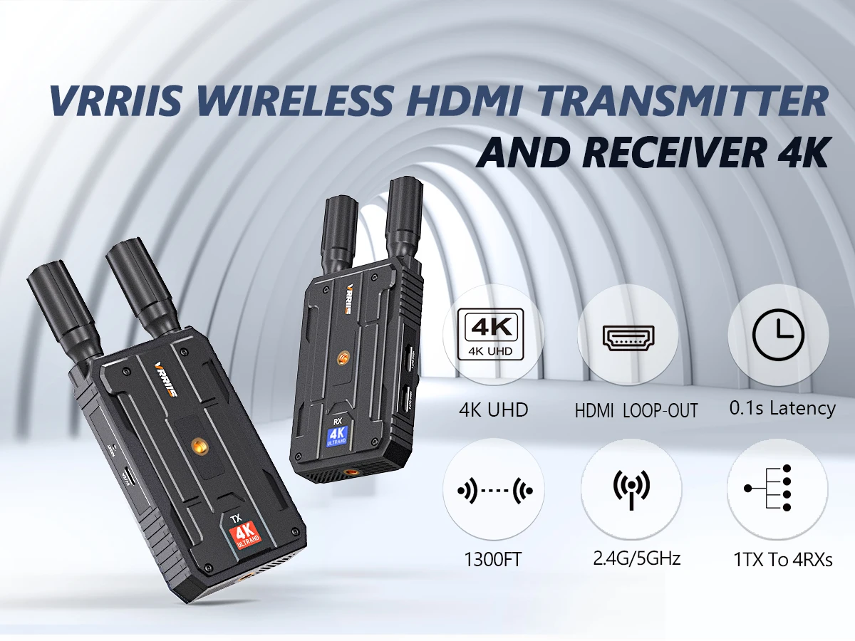 VRRIIS WL097P 4K لاسلكي HDMI موسع الصوت والفيديو الارسال والاستقبال 400 متر Suprt بطارية DSLR كاميرا الكمبيوتر المحمول إلى شاشة التلفزيون