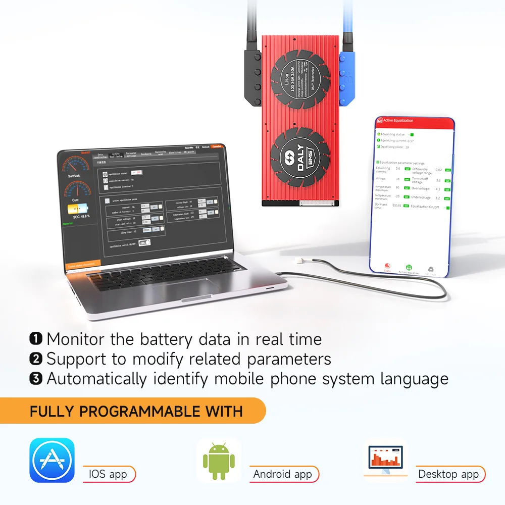 دالي الذكية BMS 10s 36v 13S 14S 16S 48V Lifepo4 BMS 17S 20S 24S 40A 60A 80A 100A 150A 200A 500A Lifepo4 ليثيوم أيون Lto Batterie