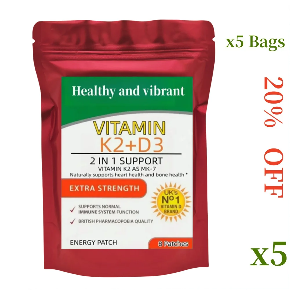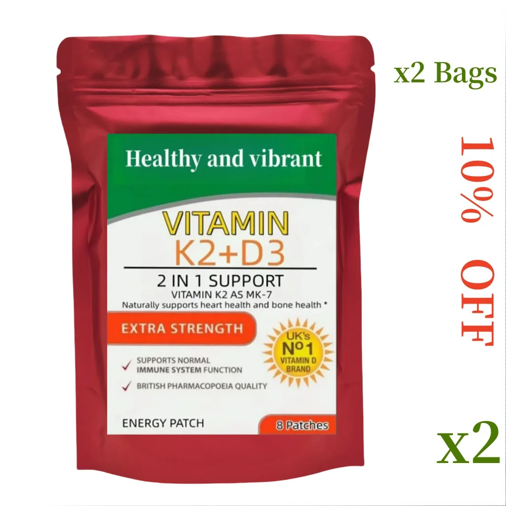 فيتامين K2 ممتاز غير جي إم او مع رقع D3 نشط بيولوجيًا MK-7 - يتضمن فيتامين د & ك معقد البيوتين وحمض الفوليك