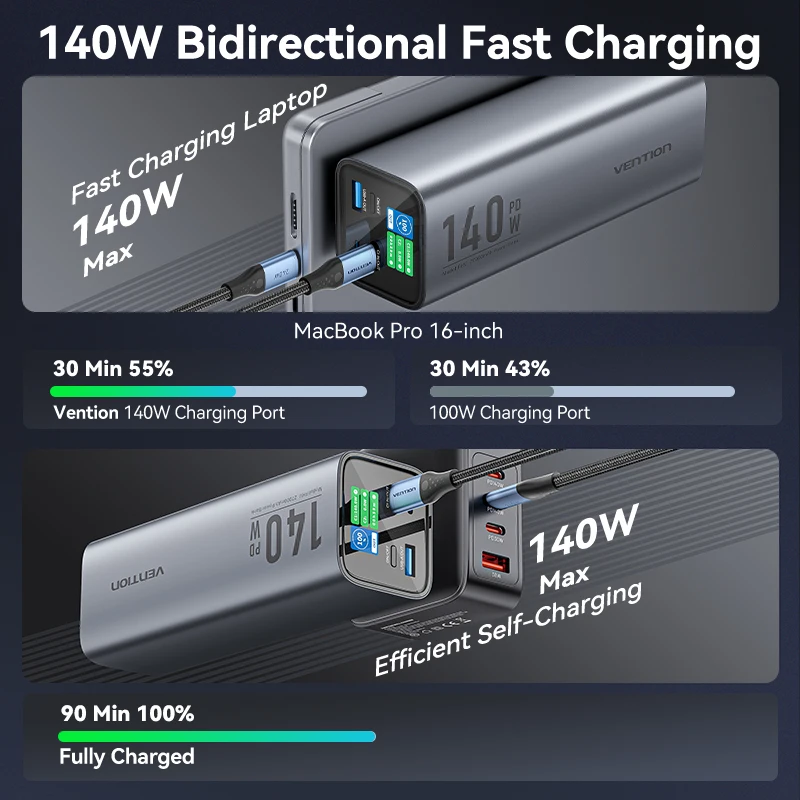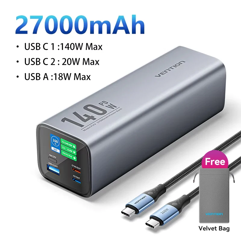بنك طاقة Vention 140 وات 27000 مللي أمبير في الساعة محمول PD بطارية خارجية باور بانك 100 وات لأجهزة Macbook Pro iPad iPhone والكمبيوتر المحمول والكمبيوتر المحمول Xiaomi