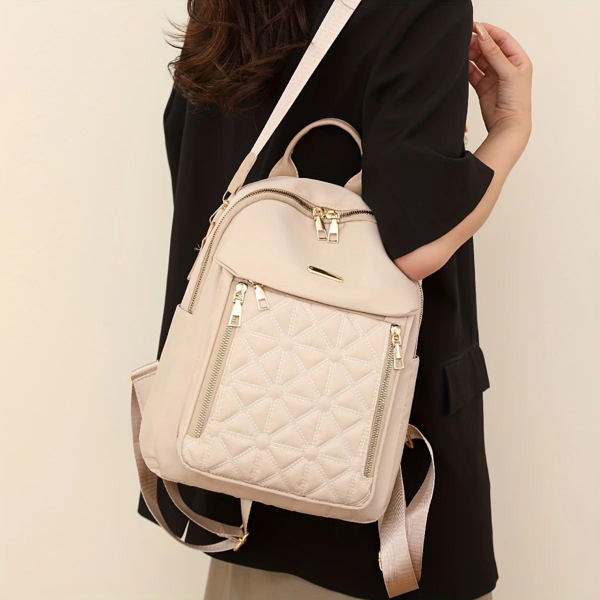 حقيبة ظهر نسائية منقوشة متعددة الاستخدامات أنيقة وقابلة للتحويل ومضادة للسرقة مع سحاب آمن وبطانة أكريليك متينة