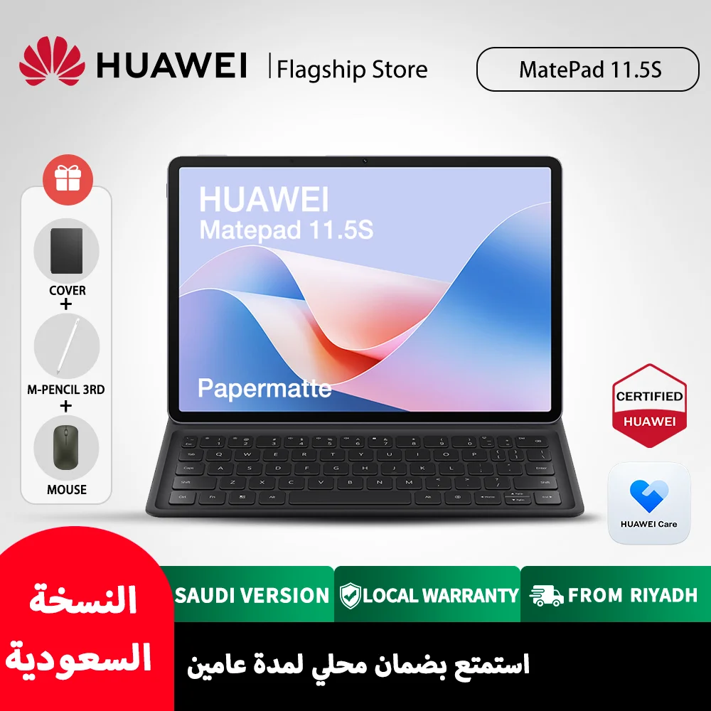 تابلت هواوي ميت باد 11.5 اس بيبر مات رمادي 8 جيجا رام 256 جيجا واي فاي ان بوكس لوحة مفاتيح نسخة الشرق الأوسط ضمان محلي