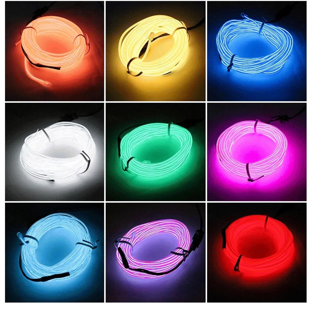 EL سلك 5/4/3/2/1 لون 1 متر أضواء مضيئة مع أضواء النيون لتقوم بها بنفسك مزيج أضواء متعددة الألوان بطاريات AA USB حفلة موسيقية شرائط ليد