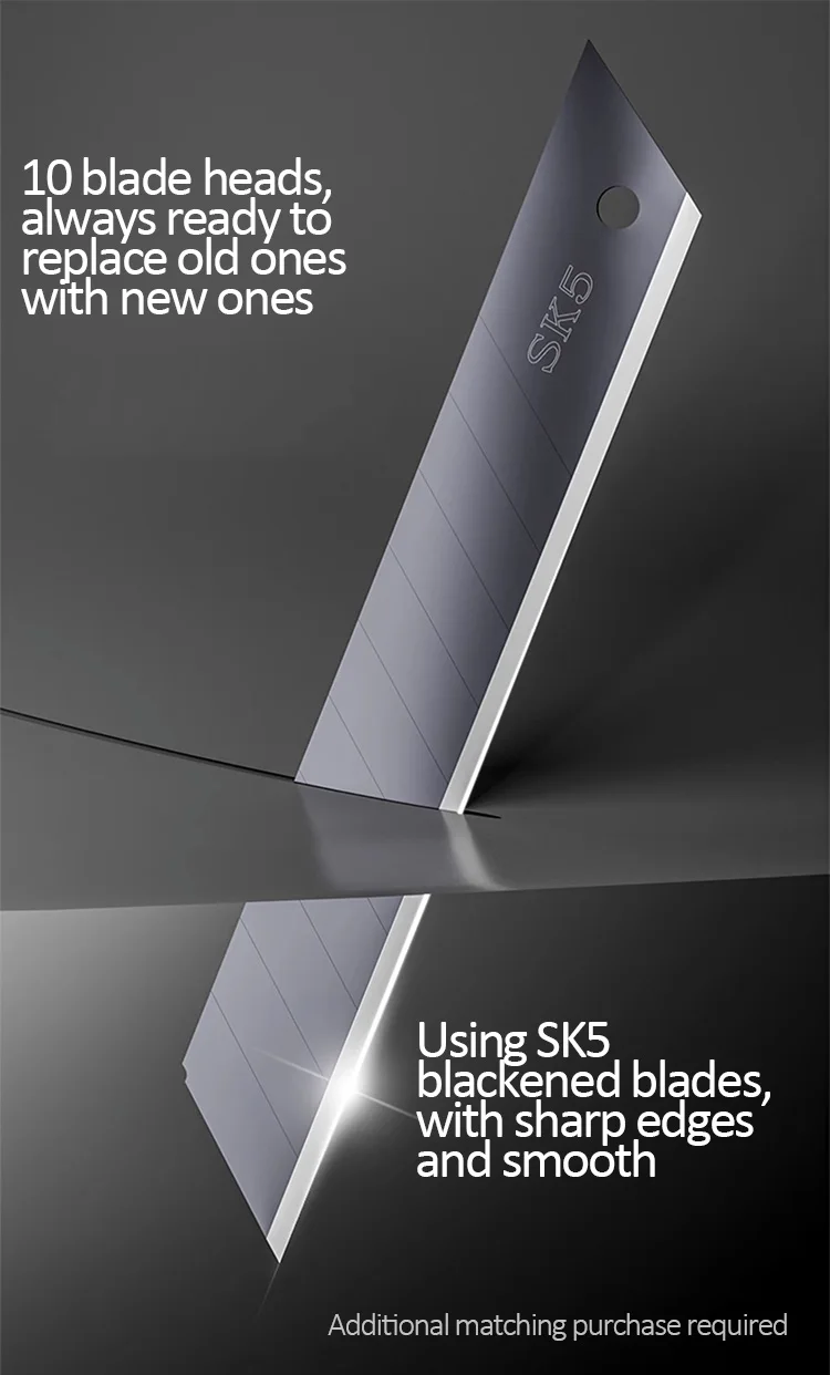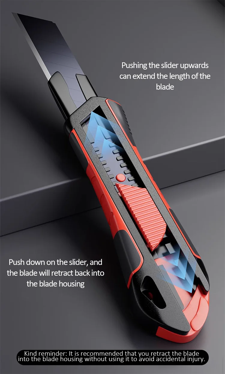 1.يوصى بإعادة الشفرة إلى غلاف السكين عند عدم استخدامها لتجنب الإصابة العرضية.