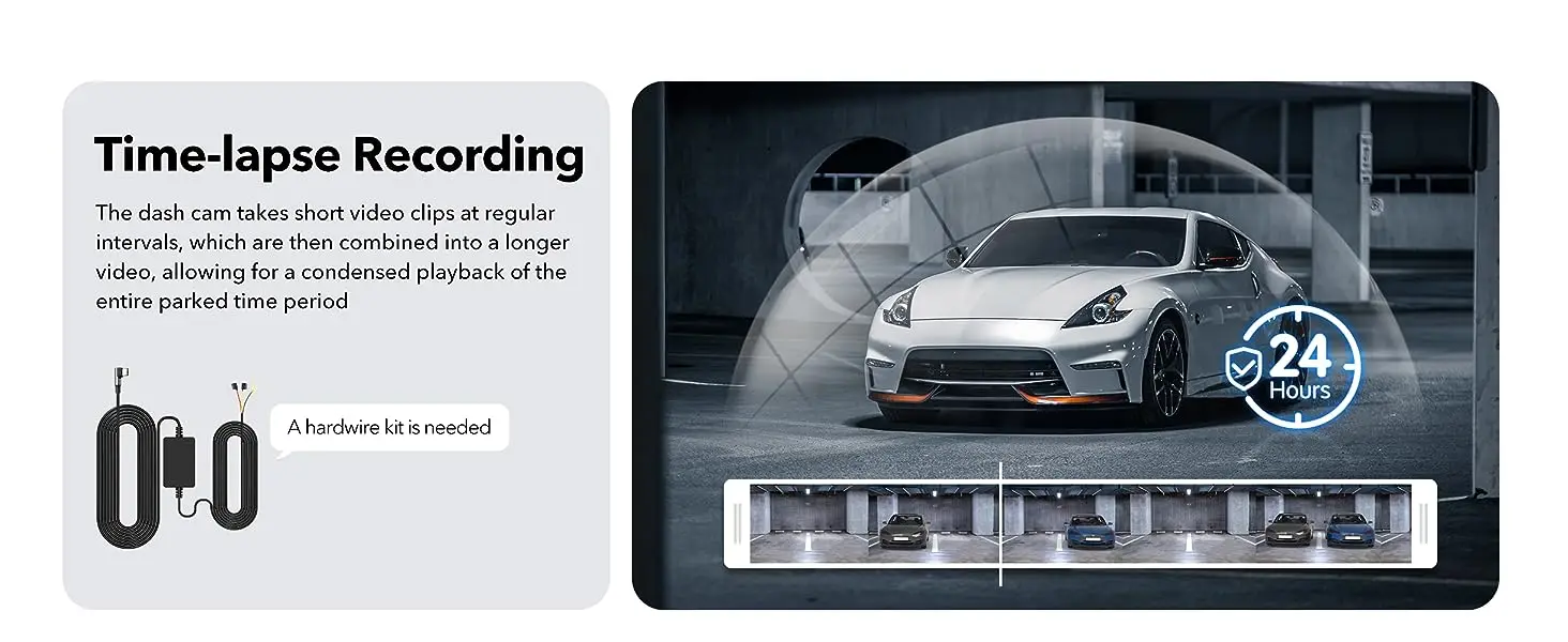 تسجيل الفاصل الزمني:تعظيم سعة التخزين.يتيح لك دعم التسجيل بفاصل زمني التقاط ساعات من اللقطات على بطاقة ذاكرة واحدة، وهو مثالي لمراقبة مواقف السيارات.يدعم بطاقة ذاكرة تصل سعتها إلى 256 جيجابايت: قم بتخزين المزيد، وقلق أقل.يستوعب F7N TOUCH بطاقات ذاكرة عالية السعة، مما يضمن حصولك على مساحة واسعة لجميع تسجيلاتك.