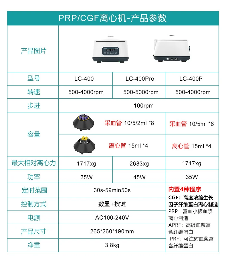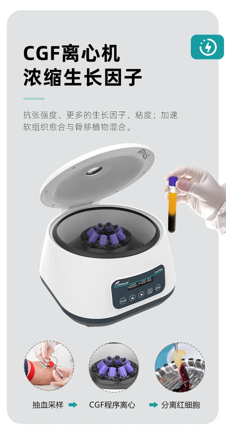 مختبر الطرد المركزي الصغيرة منخفضة السرعة Prp مصل الدهون فاصل CGF الجدول نوع 2/5/10 مللي 4000 دورة في الدقيقة سعة كبيرة الطرد المركزي
