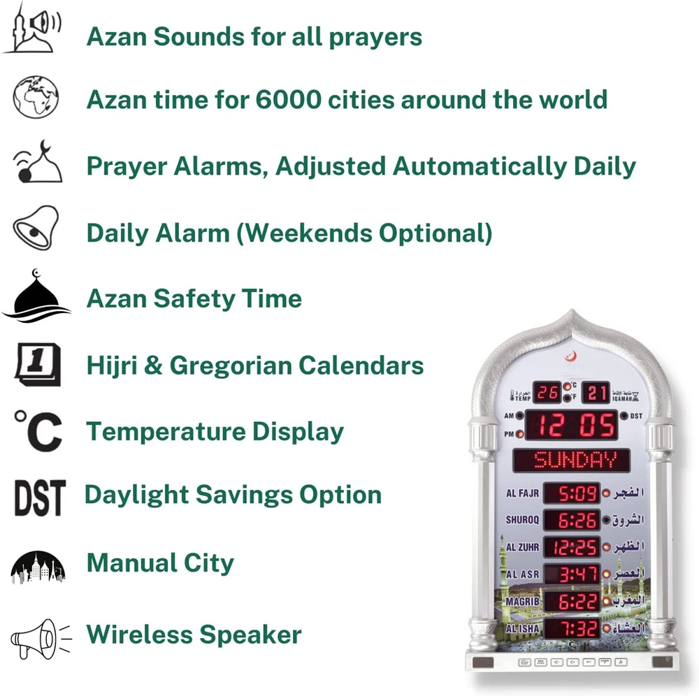 ساعة صلاة مسجد الأذان ساعة الأذان ساعة مسلمة الحرمين الصلاة الإسلامية مع ساعة الهدايا الإسلامية أفضل هدية