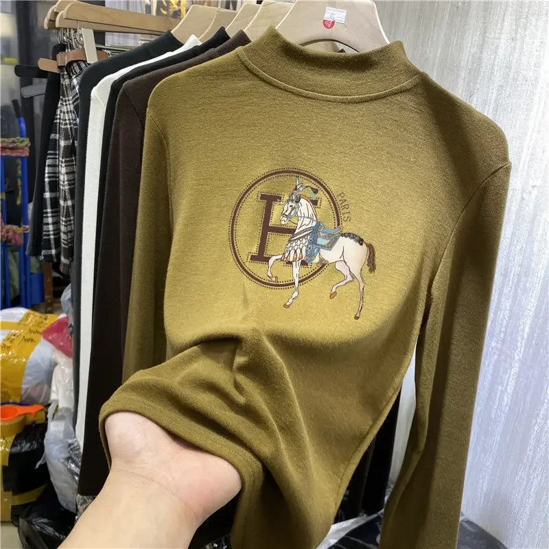 الصوف نصف بولو/السلحفاة الرقبة قاعدة طبقة الملابس النسائية الخريف/الشتاء نمط سميكة الدافئة الأكمام تي شيرت الداخلية