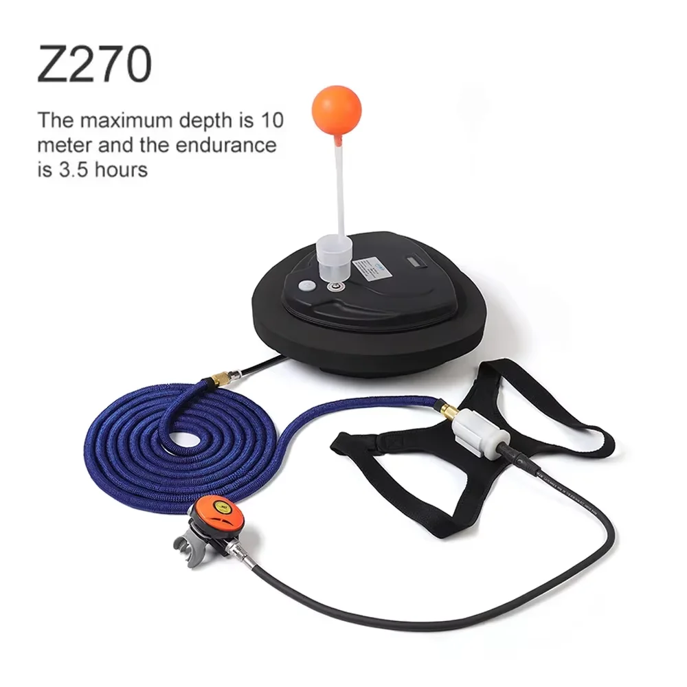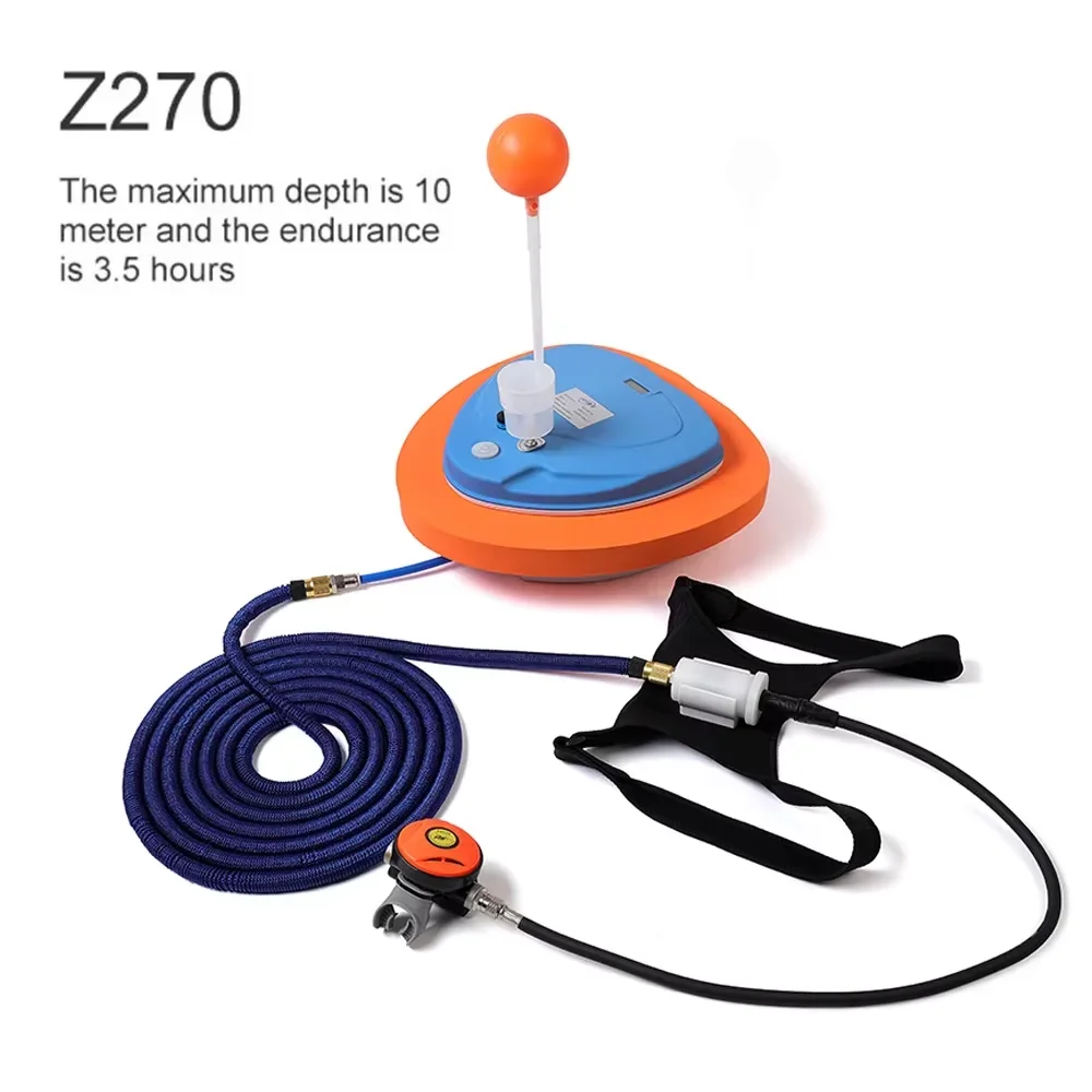 Working Principle: transport air above the water surface through a compressor and an underwater air line using the powerful air pump motor. Divers are able to breathe underwater through an octopus.