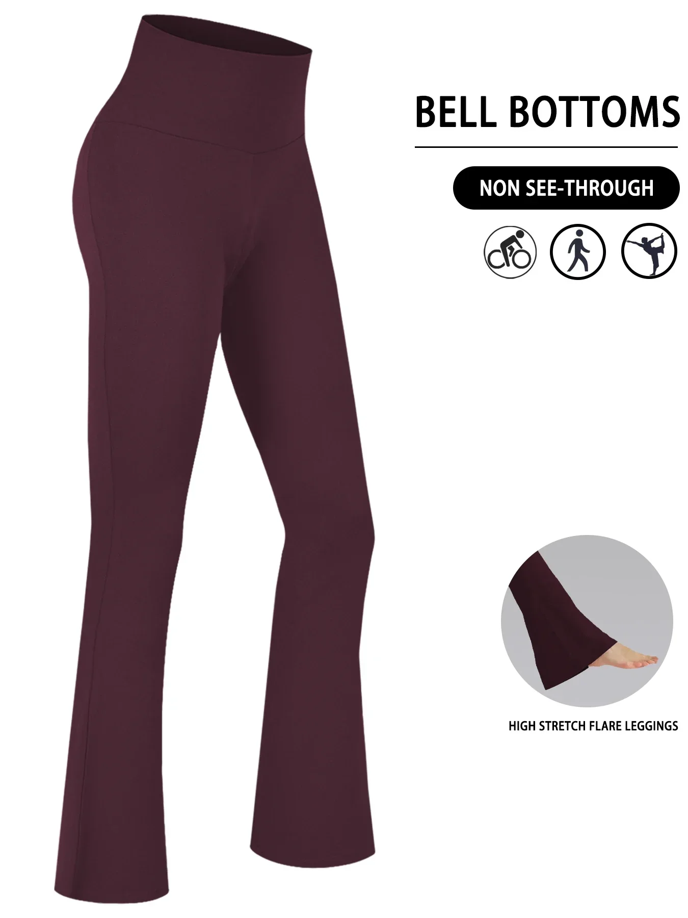 سروال نسائي فائق النعومة مضيئة عالي الخصر للتحكم في البطن، سروال يوجا للتمرين، قيعان جرس
