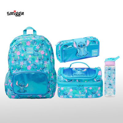 MINISO Smiggle حقائب مدرسية غرزة حقيبة الظهر الأزرق الكرتون الأطفال حقيبة مدرسية حقيبة الغداء زجاجة ماء هدية الطالب