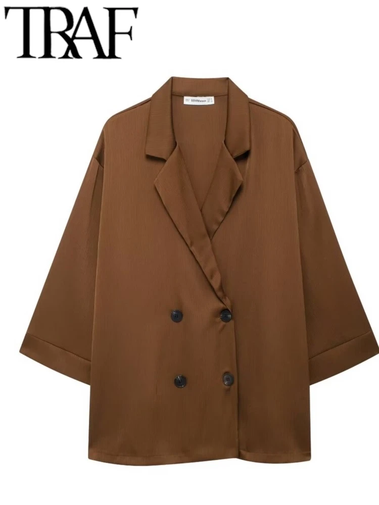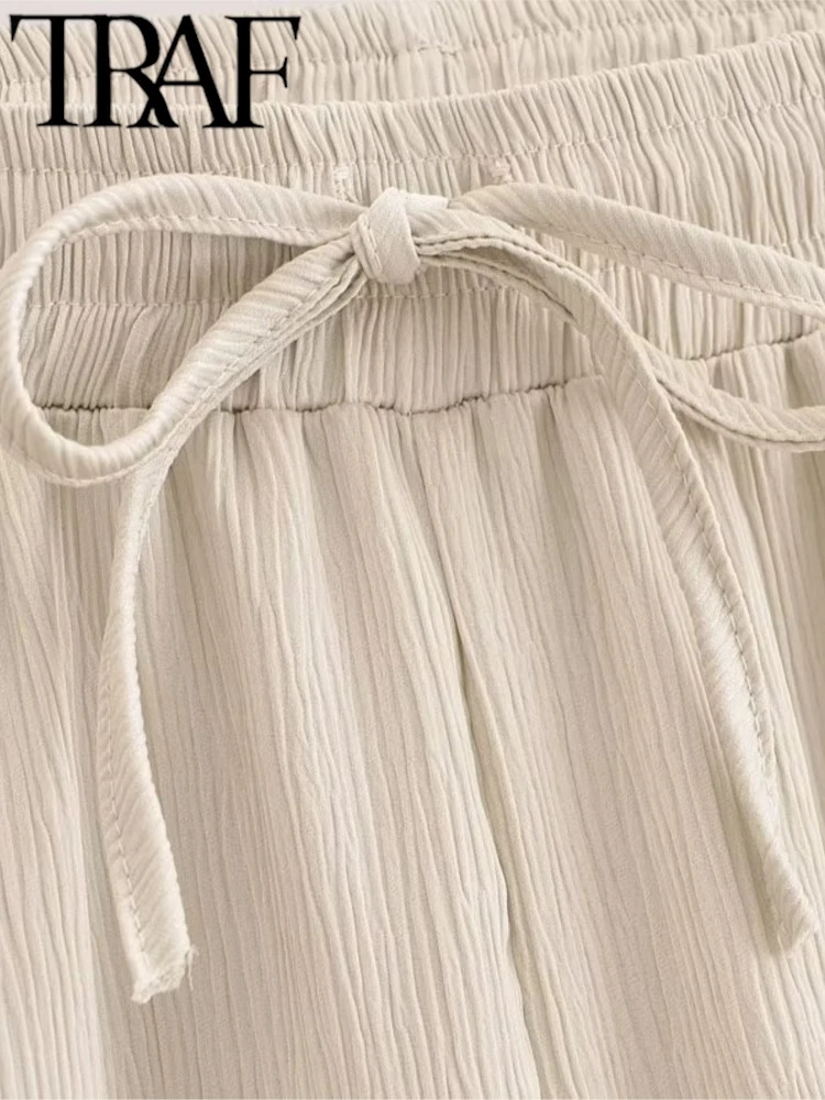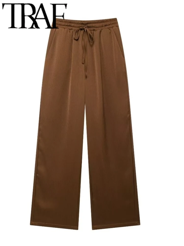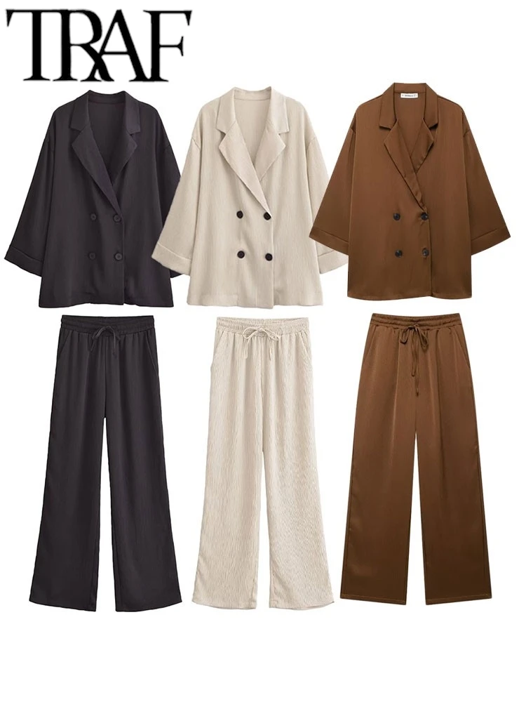 TRAF ROBE Y2K مجموعات النساء بنطال ذو قصة أرجل واسعة 2025 الربيع التجاعيد تأثير المعتاد مكتب سترة معطف فضفاض السترة الدعاوى OL وتتسابق