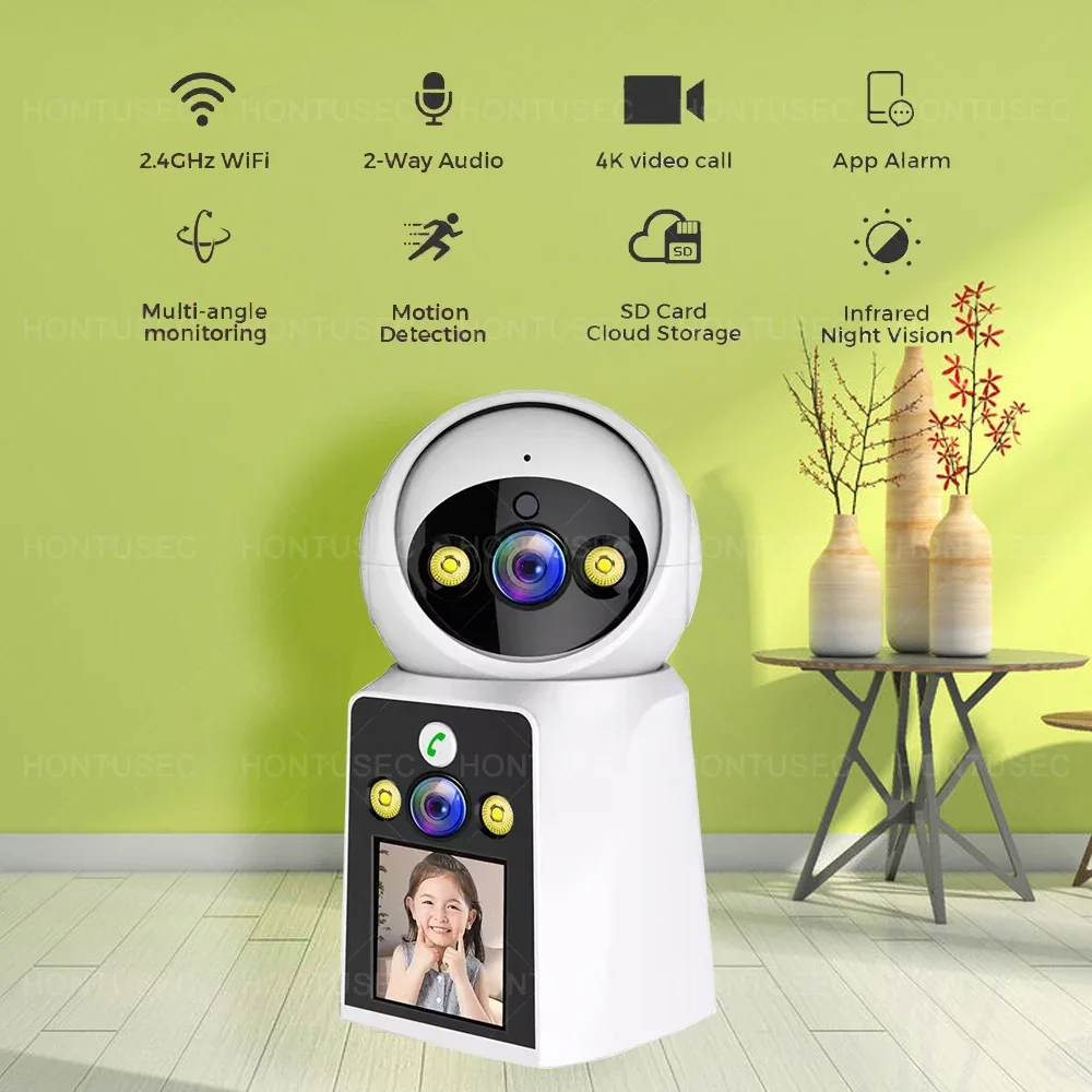 كاميرا Yoosee 4K 8MP لمكالمات الفيديو مع كاميرا LCD PTZ بعدسة مزدوجة لأمن المنزل ومراقبة IP وتتبع تلقائي ورؤية ليلية ملونة
