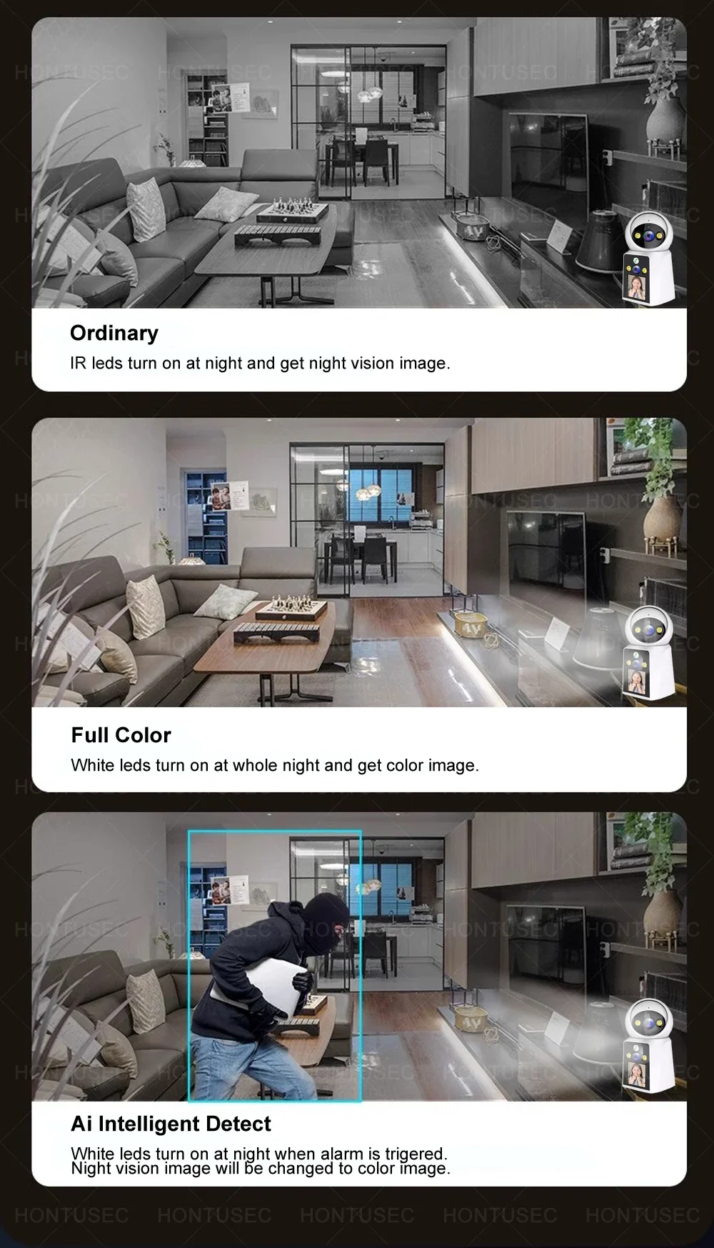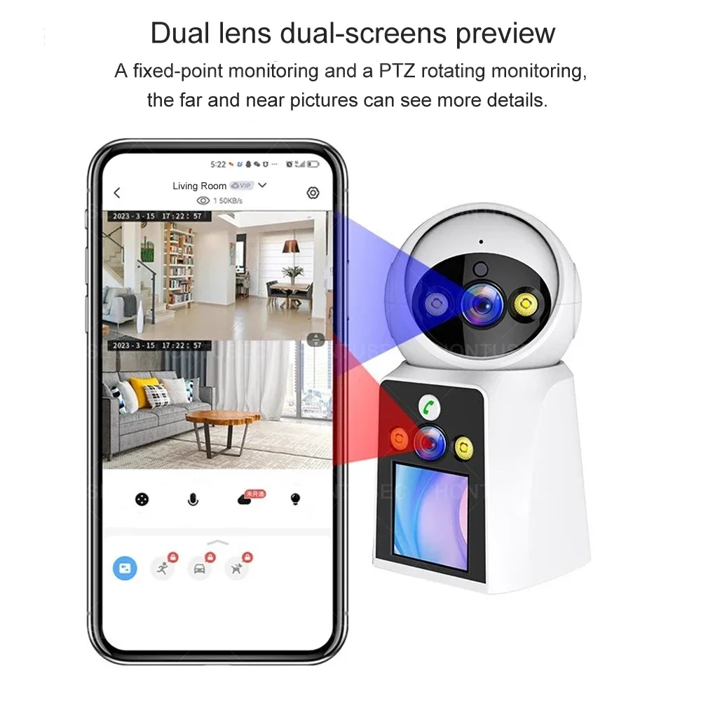 Product Features Note:This product has No built-in rechargeable battery, Need to plug cable and keep the power supply connected. ◆ 4MP(2MP+2...