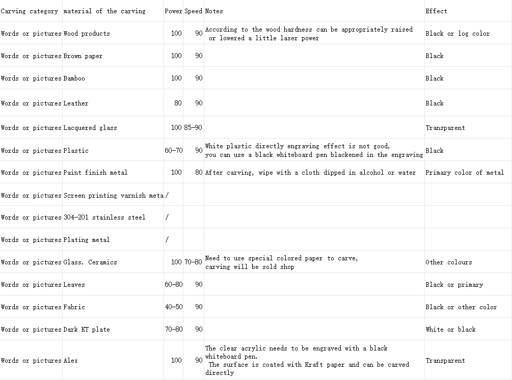 المواد القابلة للتطبيق: الخشب، الورق، البلاستيك، الجلد، الخيزران، ورق الكرافت، المعدن المطلي، إلخ.يمكن قطع الورق والخشب والجلود بقطر 0.2 مم.