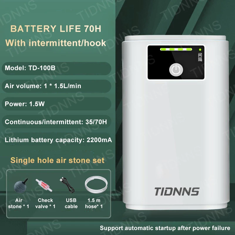 【طاقة عرض أنبوب رقمي LED】مضخة الهواء USB هذه مجهزة بسرعات تعديل حجم الهواء، والتي يمكنها معرفة مستوى البطارية ووضع مضخة الهواء بوضوح.يمكن أن تعمل كمضخة هواء قياسية لحوض السمك، أو مضخة طوارئ أثناء انقطاع التيار الكهربائي، أو مضخة صيد لهواة الصيد.
