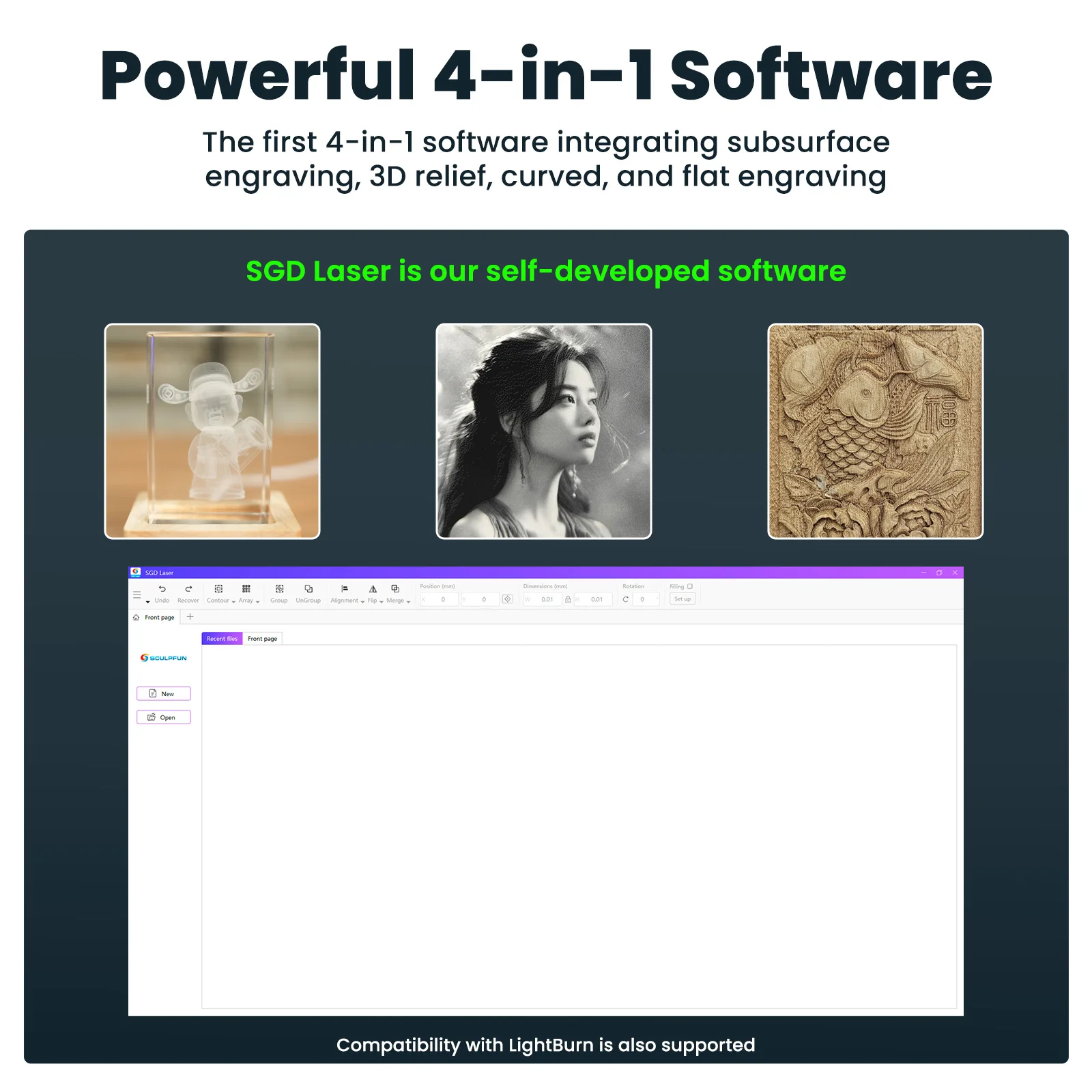 توفر Sculpfun SGD Laser، وهو تطبيق مجاني للهواتف الذكية وتطبيق للكمبيوتر الشخصي يساعدك على النقش بسهولة.توفر هذه التطبيقات إمكانات غنية لتحرير الصور مثل التحرير متعدد الطبقات وإعدادات النقش المتغيرة واستيراد الصور متعددة التنسيقات.بالإضافة إلى ذلك، يتوافق V5 أيضًا مع LightBurn، لذلك يمكن للتطبيقات المتعددة أن تلبي احتياجات كل من المحترفين والمبتدئين.