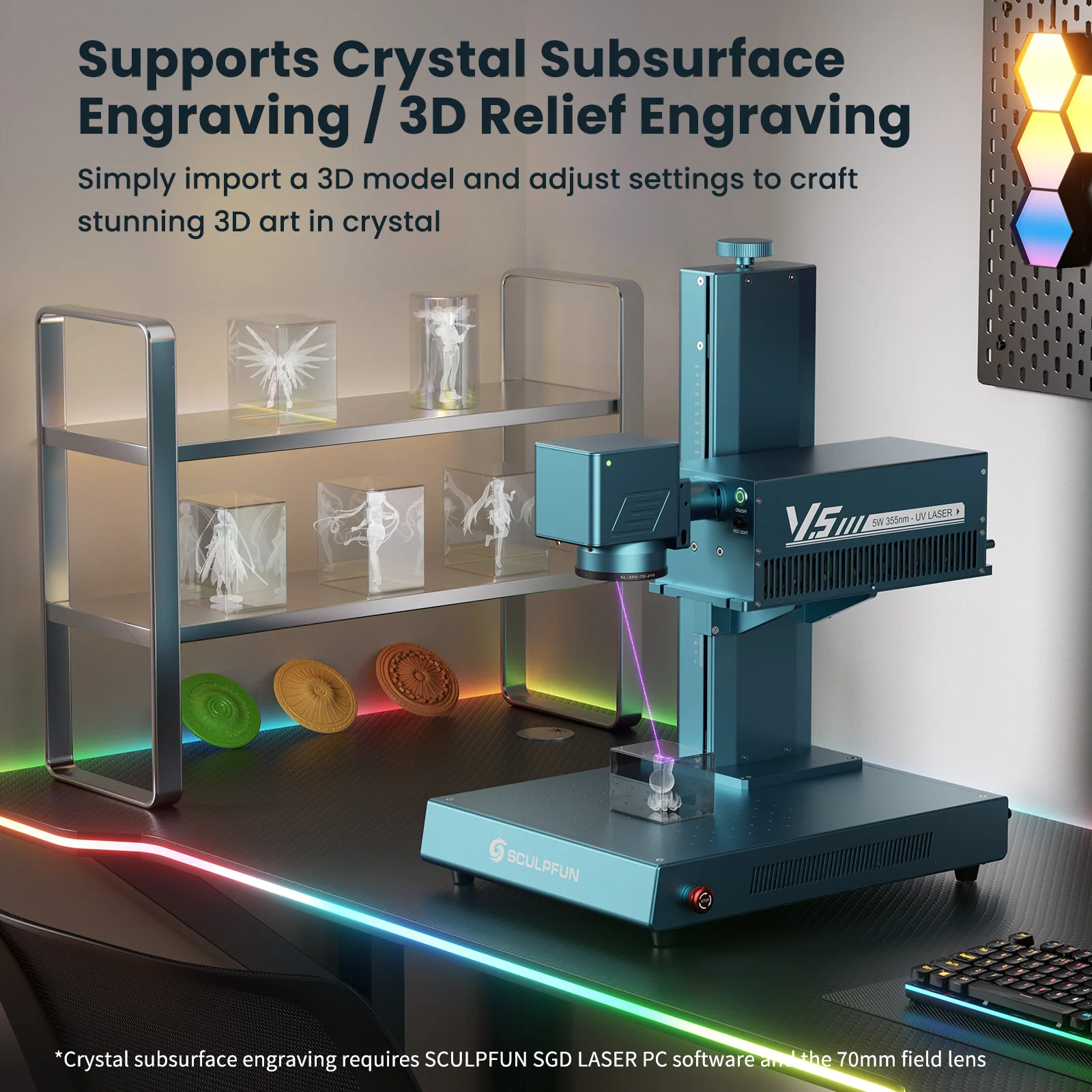 (ملاحظة: يتطلب نقش السطح الفرعي الكريستالي برنامج SCULPFUN PC وعدسة مجالية مقاس 70 مم.)