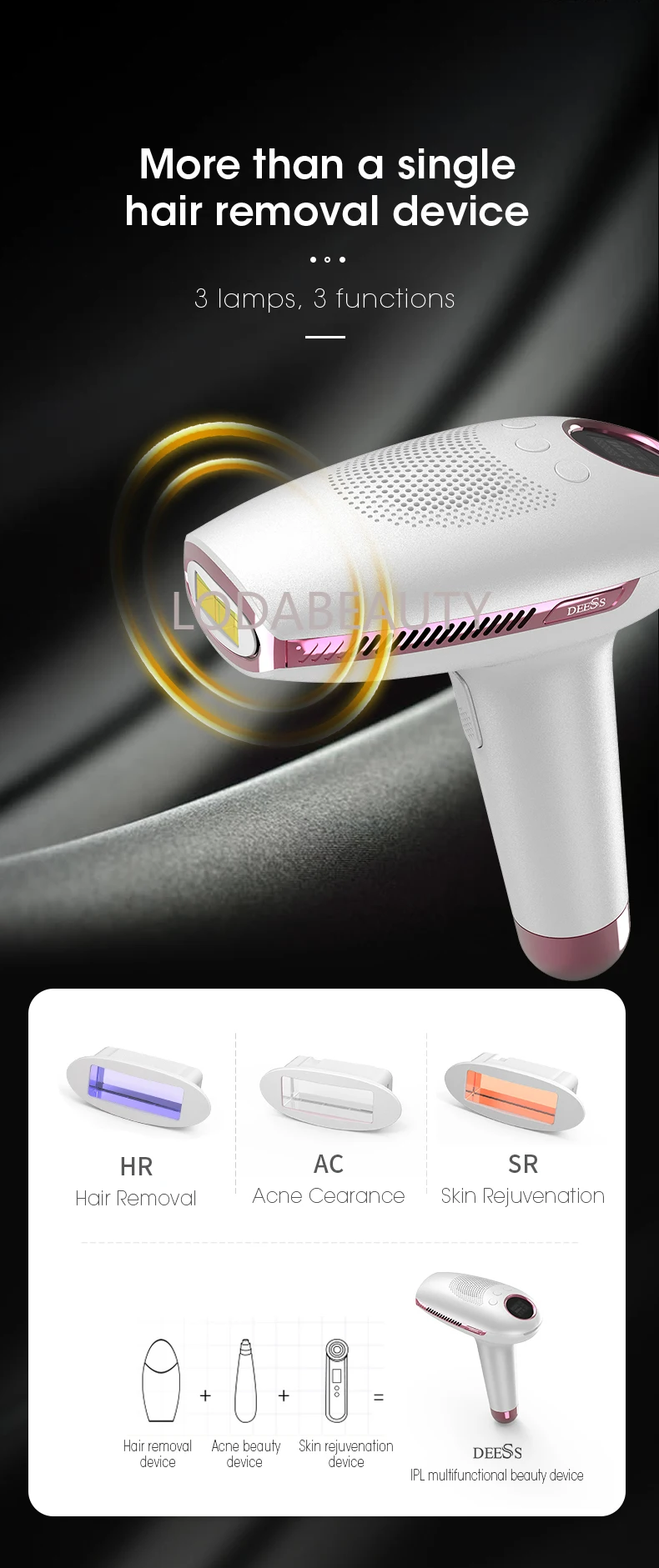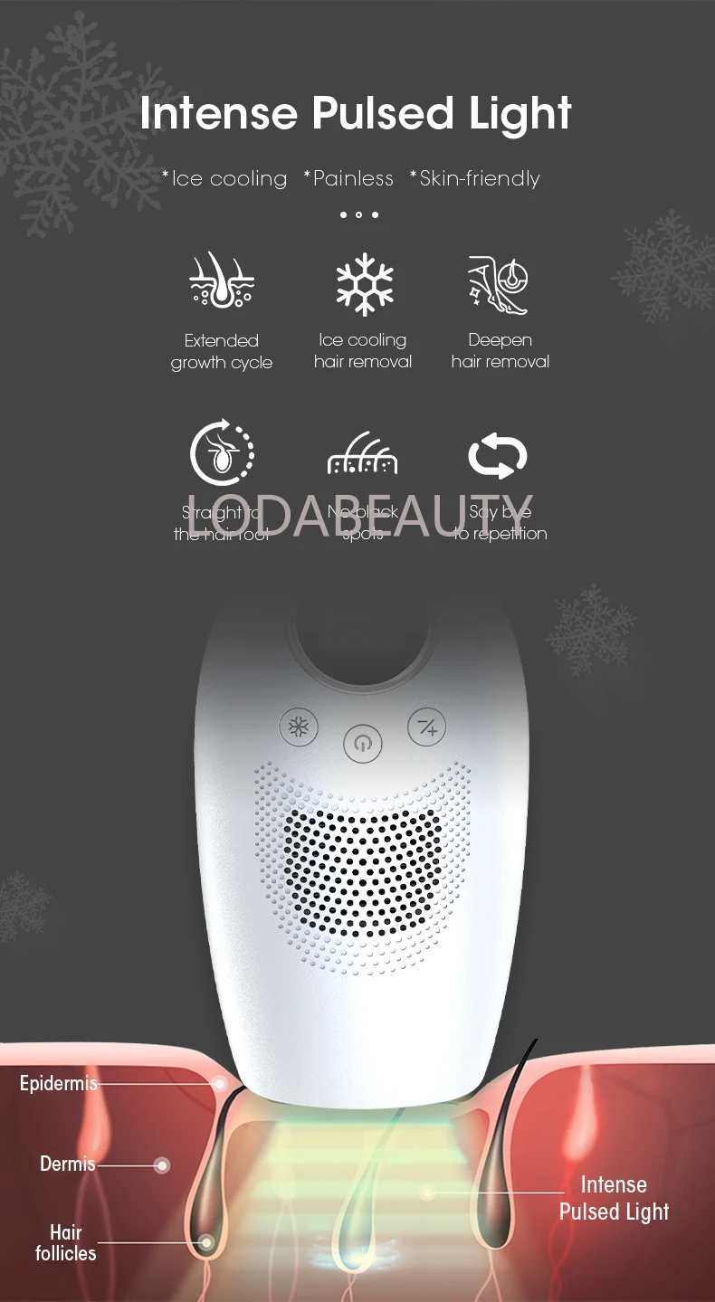 جهاز إزالة الشعر بالليزر لإزالة الشعر ، إزالة الشعر بشكل دائم ، إزالة الثلج والجليد بدون ألم ، ومضات غير محدودة ، الوجه والجسم ، المنزل ، GP591