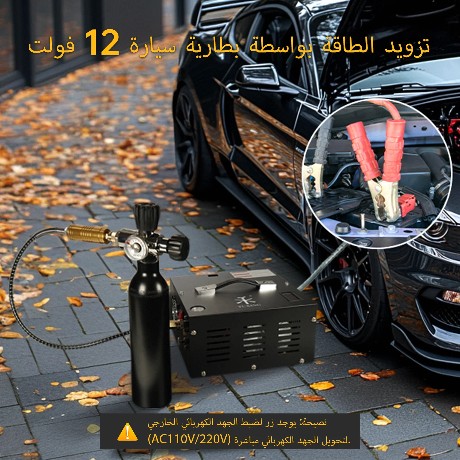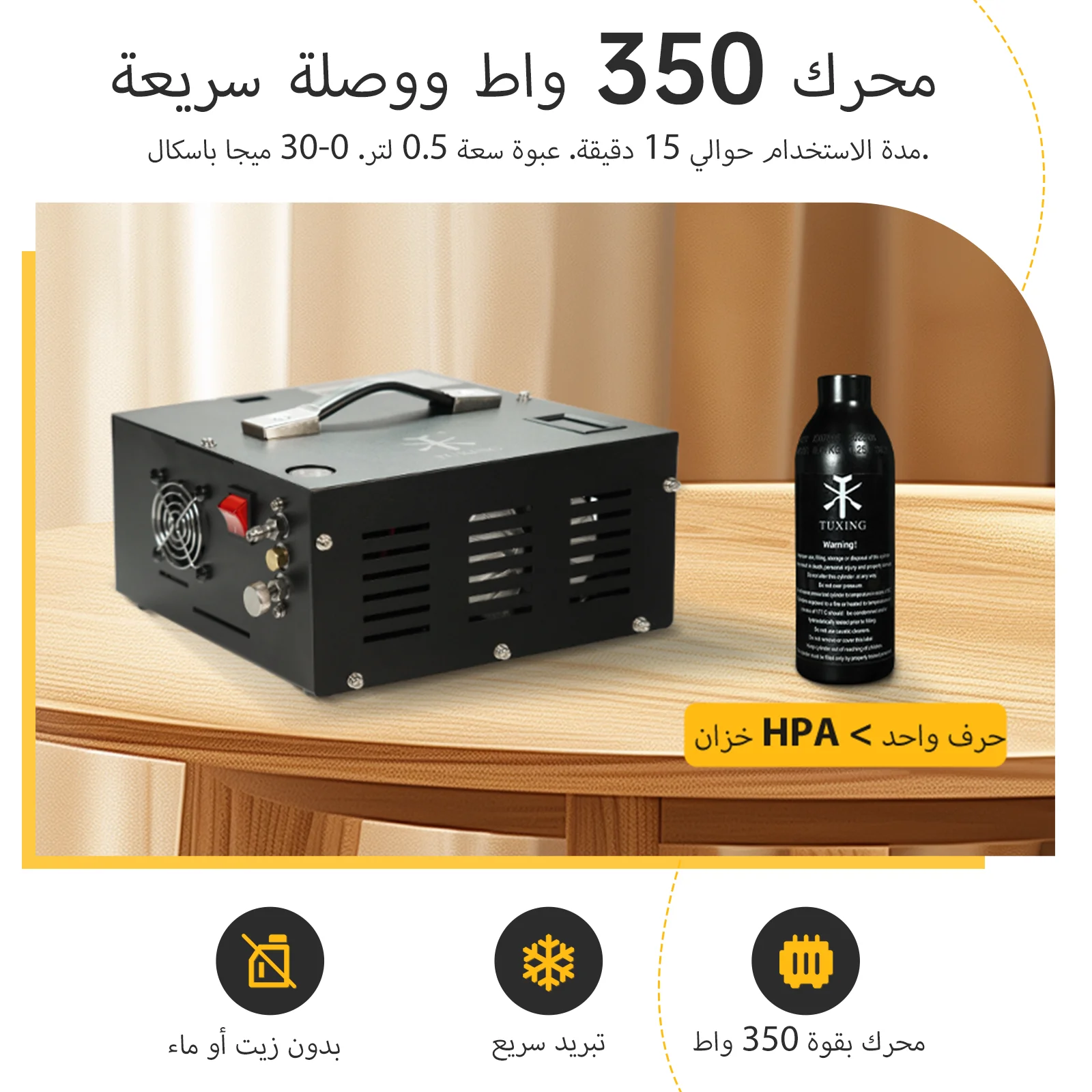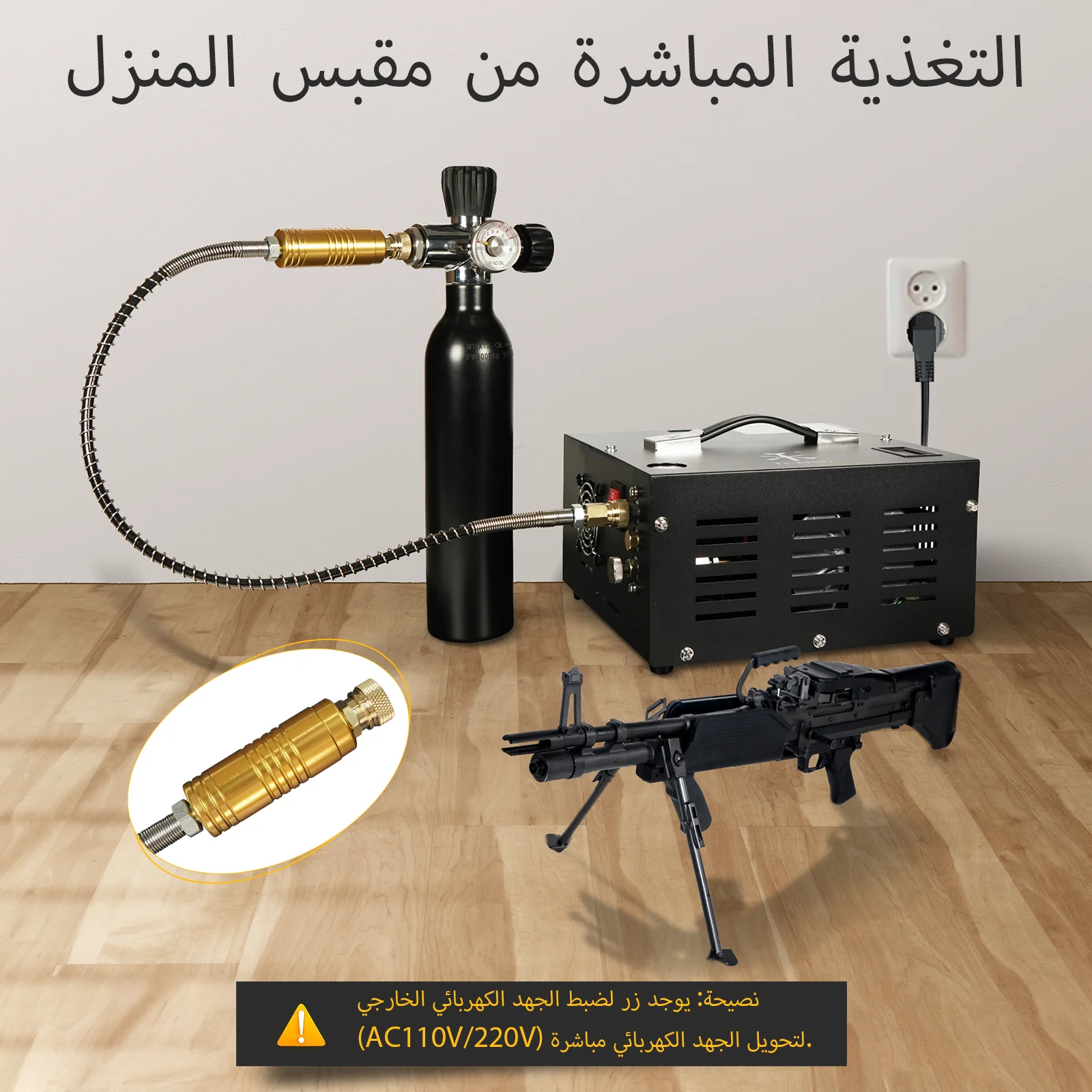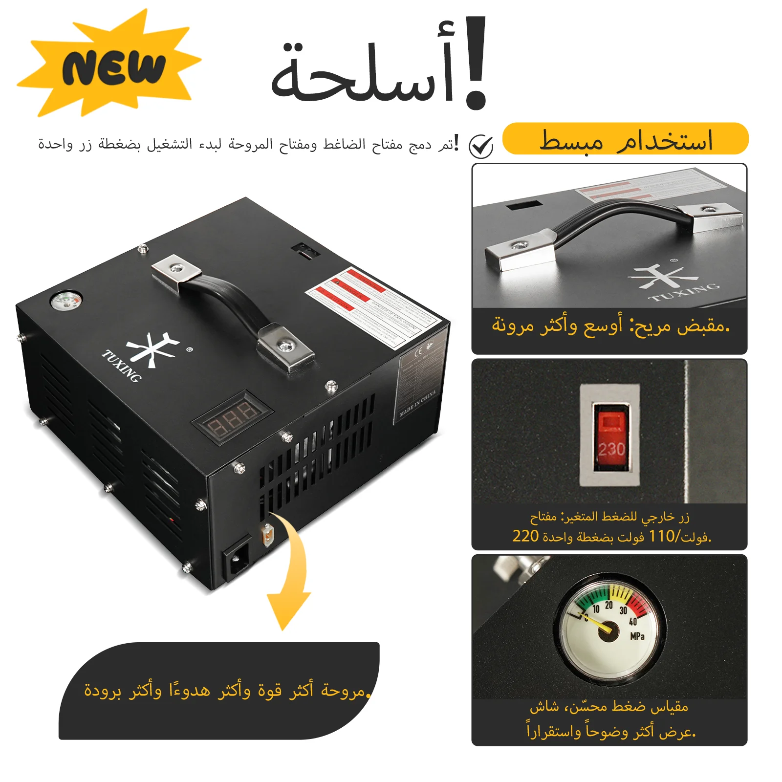 ضاغط هواء TUXING 300 بار PCP 110 فولت/220 فولت، مضخة هواء عالية الضغط مع مصدر طاقة 12 فولت للسيارة لخزان بندقية PCP
