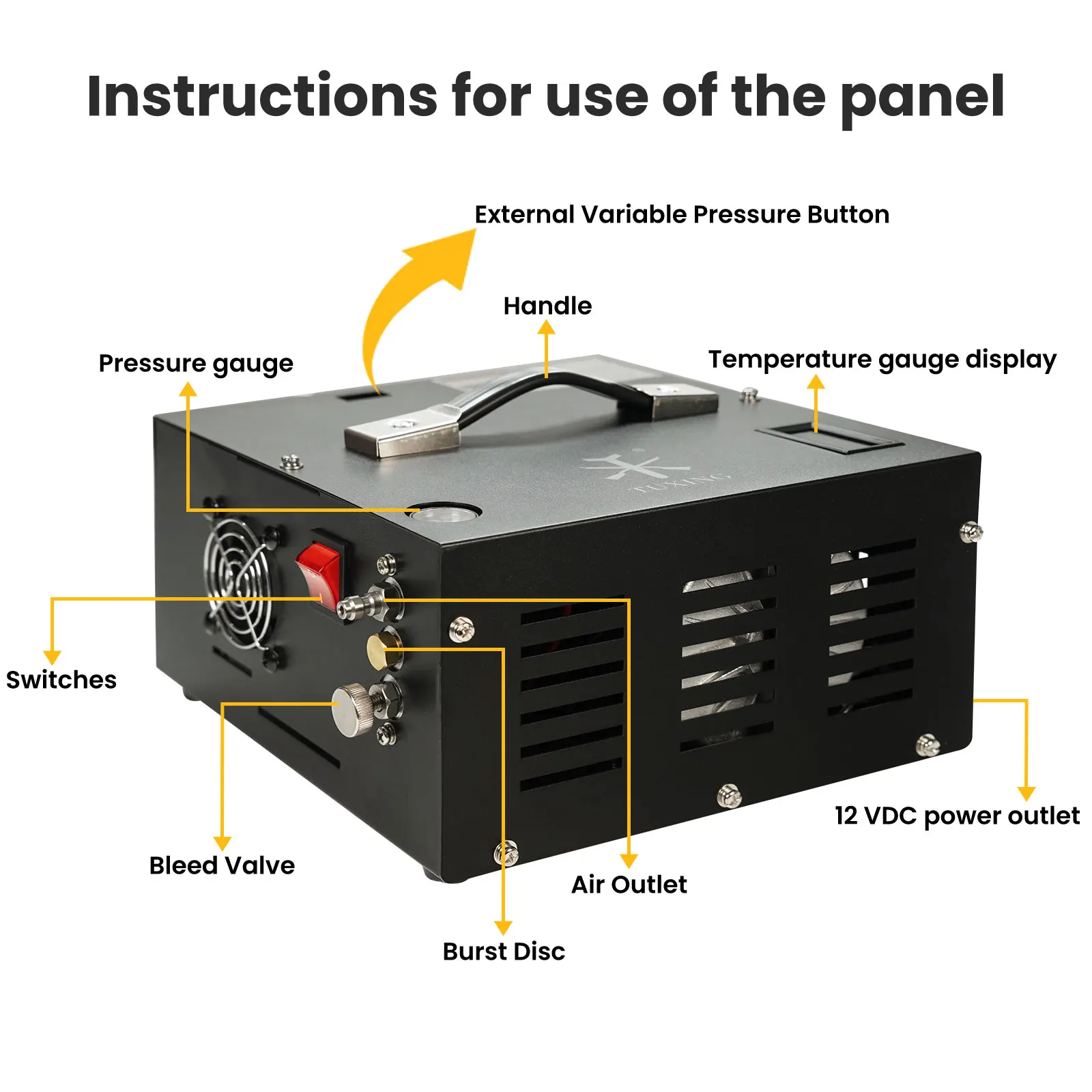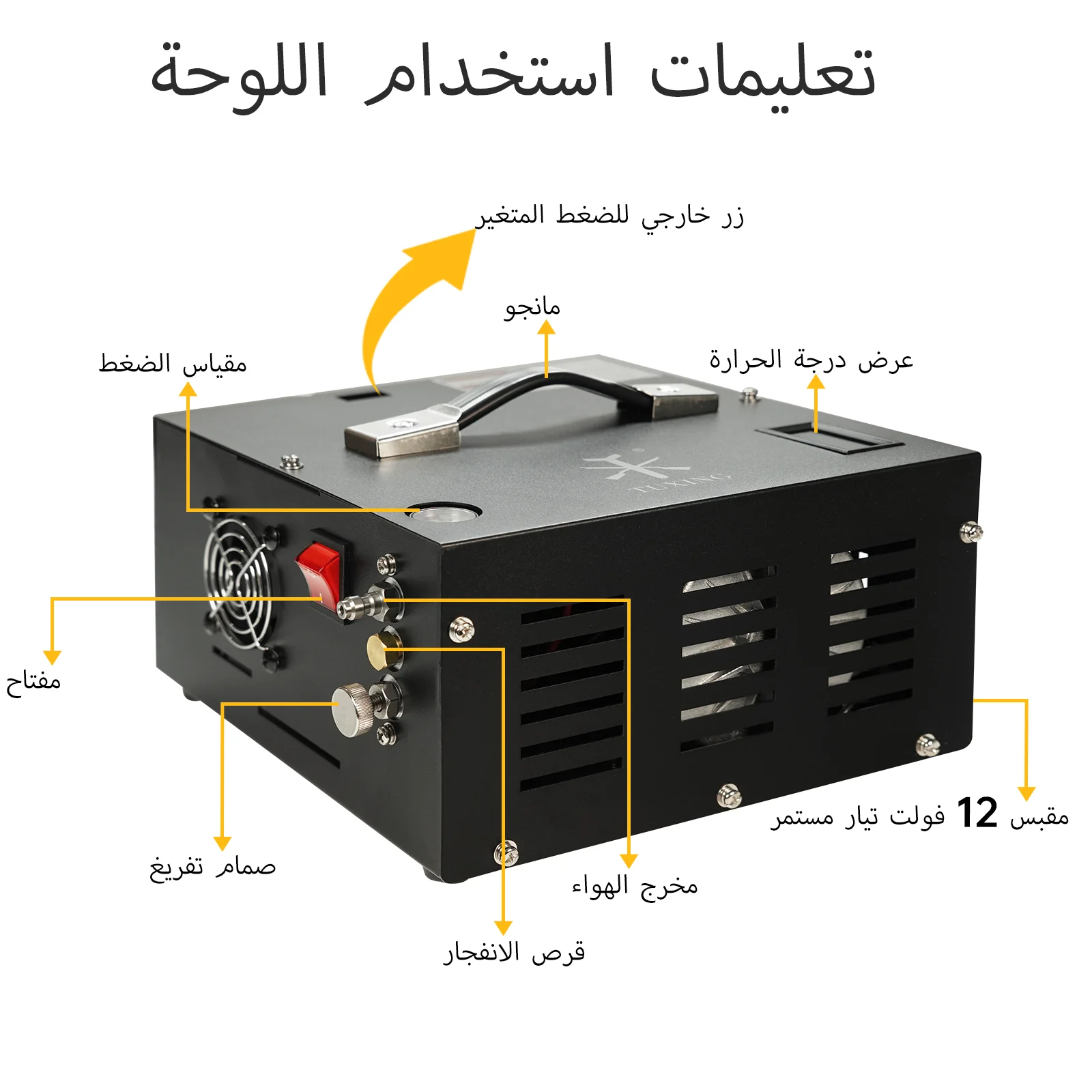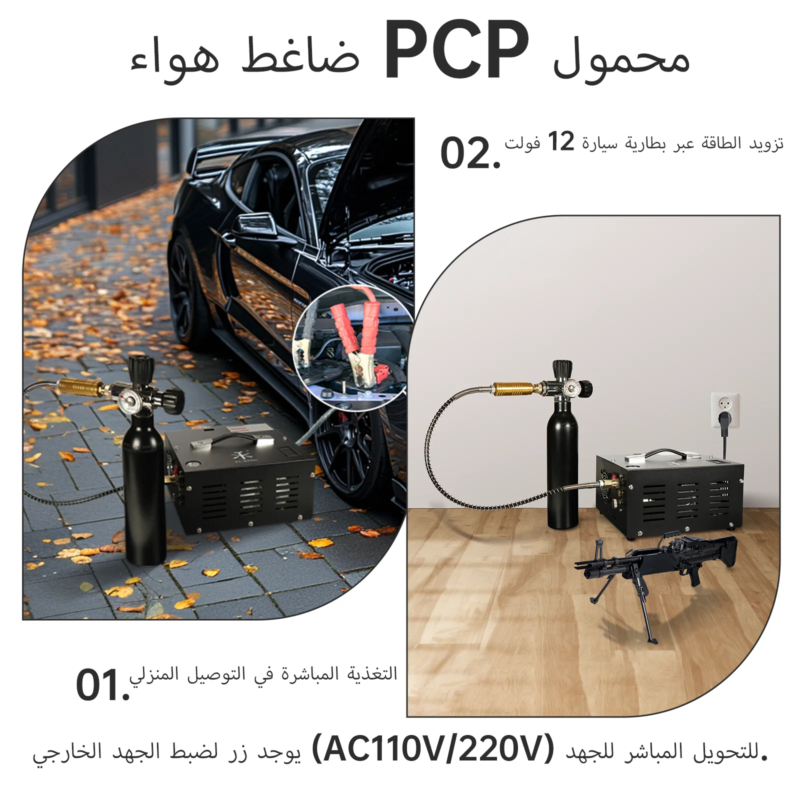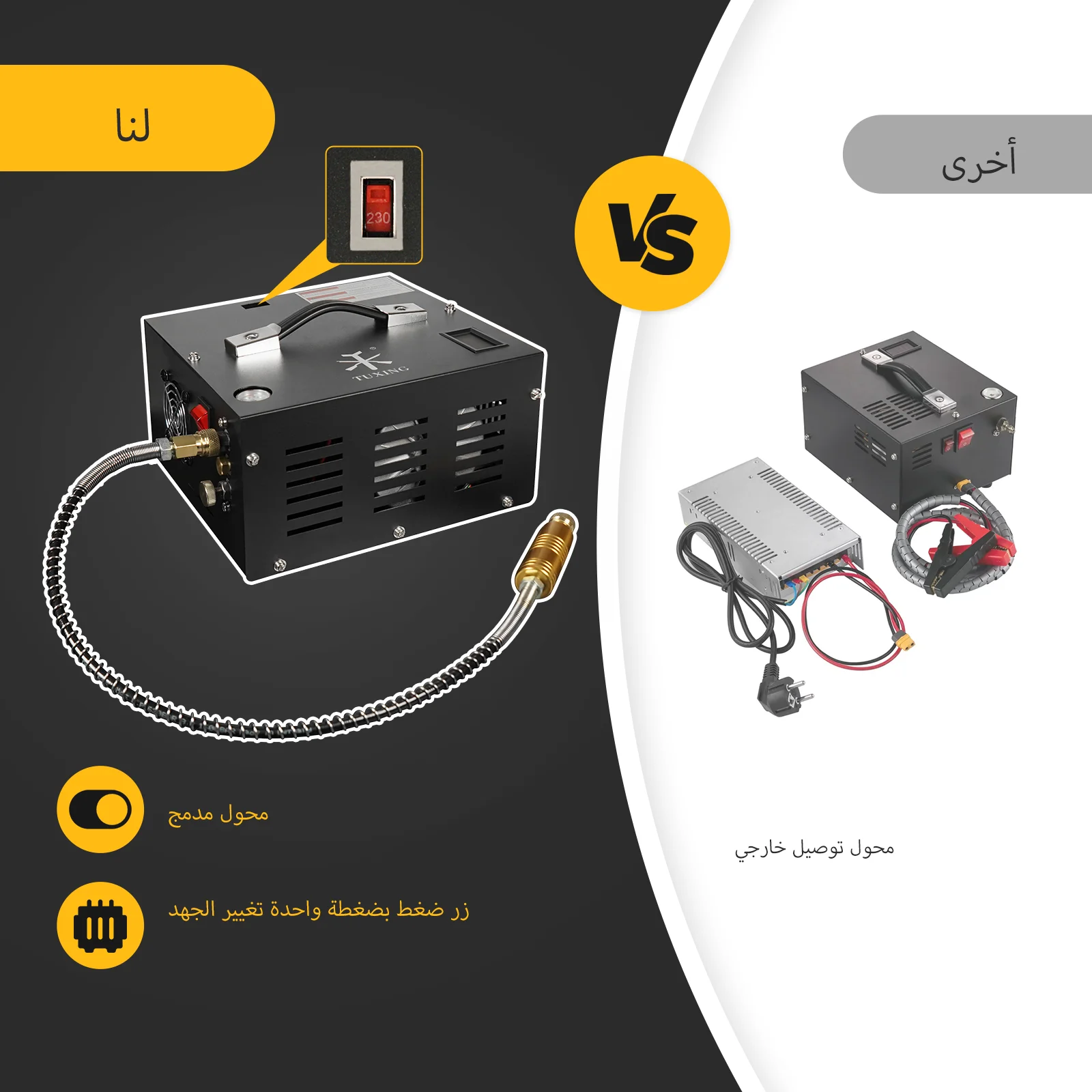 ضاغط هواء TUXING 300 بار PCP 110 فولت/220 فولت، مضخة هواء عالية الضغط مع مصدر طاقة 12 فولت للسيارة لخزان بندقية PCP