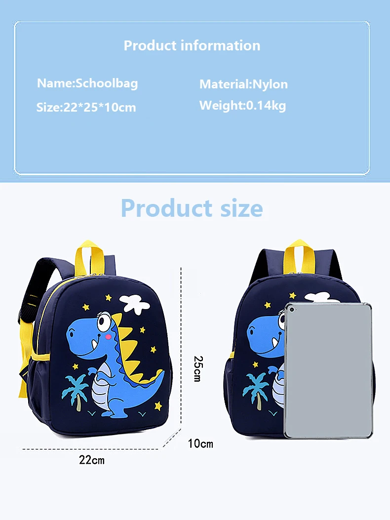 • تصميم ديناصور رائع :تتميز هذه الحقيبة المدرسية بطبعة ديناصور كرتونية عصرية ، مما يضيف لمسة ممتعة وفريدة إلى إكسسوارات عودة طفلك إلى المدرسة.