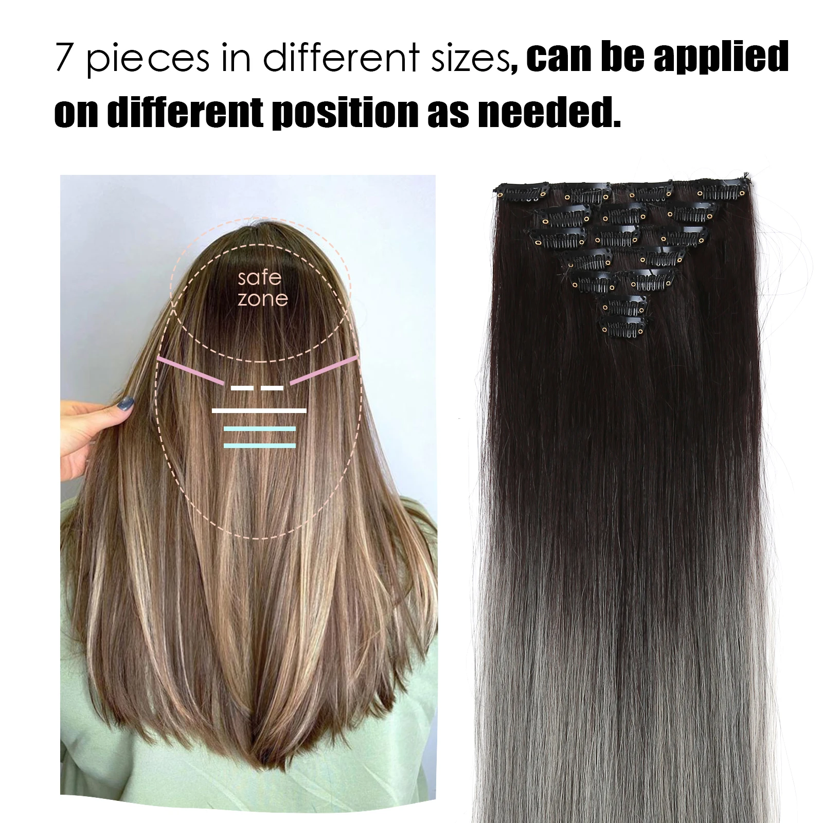 7 قطعة/المجموعة الفضة الأسود أومبير رمادي الاصطناعية مشبك شعر في طويل مستقيم الطبيعية سميكة هيربيسي للنساء تأثيري وصلات شعرأسباب الشراء:✨ وصلات شعر صن...